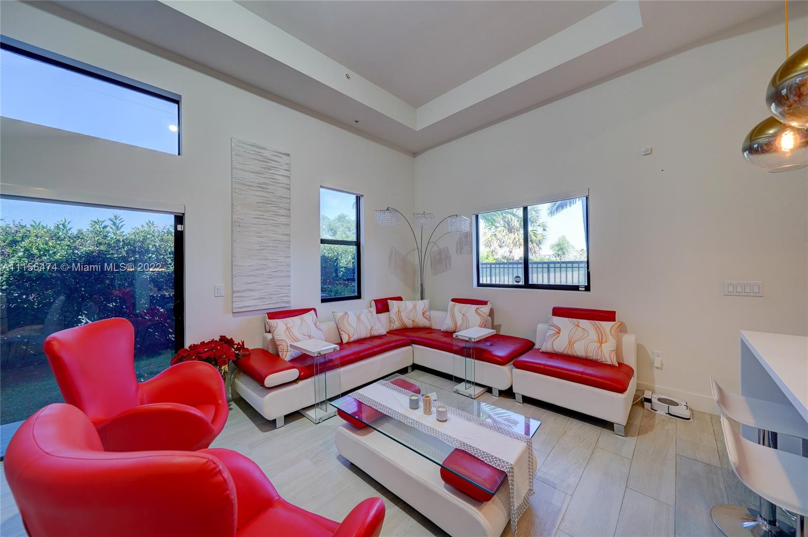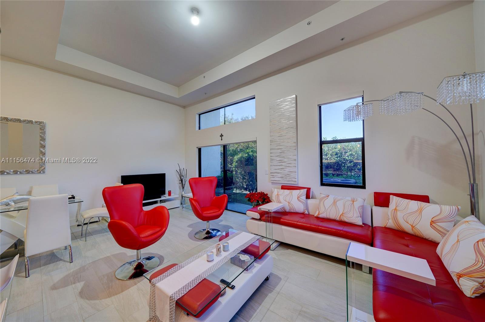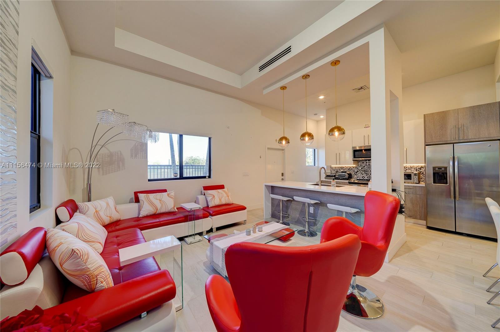 Beautiful townhome located in a gated community that is FHA and VA approved. This Thorin model is a corner unit that allows for entrance privacy and a short walk to the pool and gym. It has 3 bedrooms (all upstairs), 2.5 baths, patio that is accessible from the main living area, high ceilings, nest thermostat and security cameras. High quality, contemporary, state of the art designer accents, custom window shades throughout unit. The kitchen has stainless appliances, European cabinetry and signature island. Ceramic and wood floors throughout. Master bedroom has 2 walk in closets and balcony. Garage is oversized with ultra high ceilings for storage. IMPACT WINDOWS AND DOORS throughout. Clubhouse amenities include pool, fitness center and billiard room.