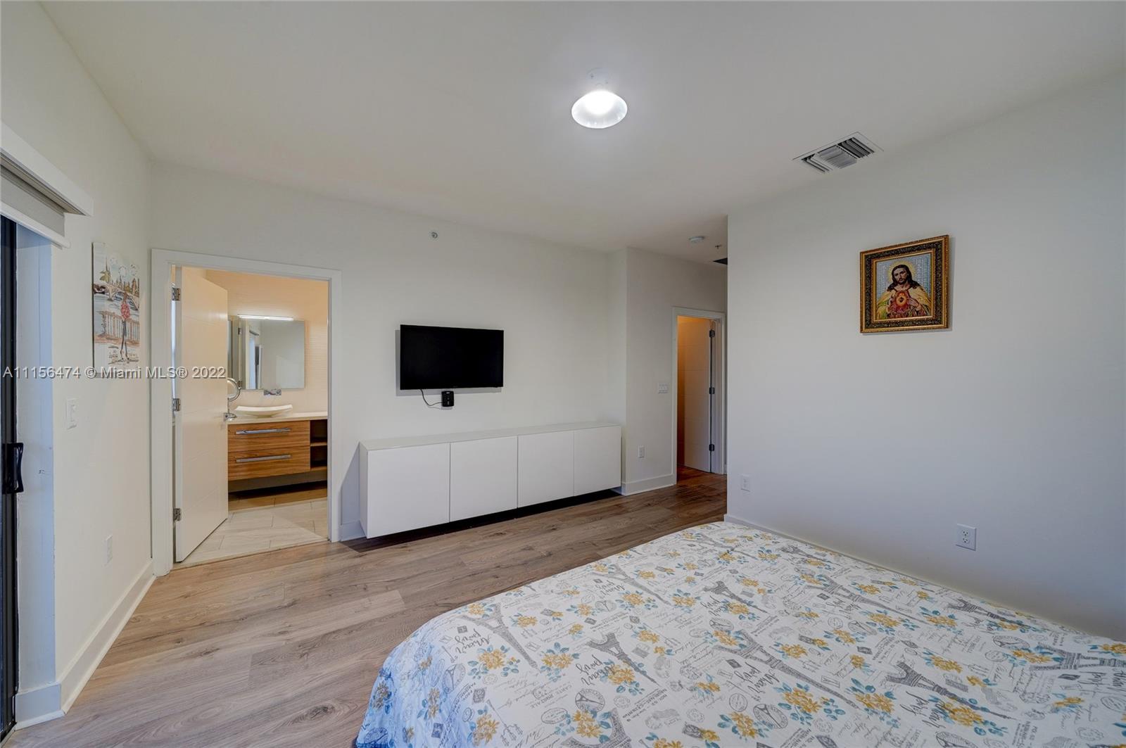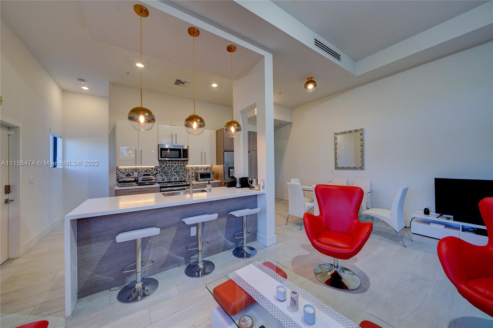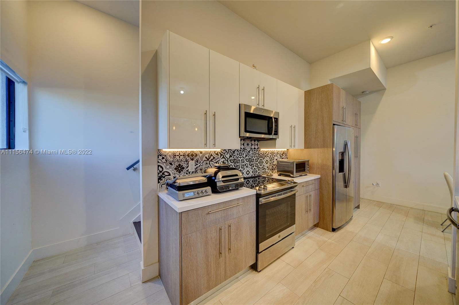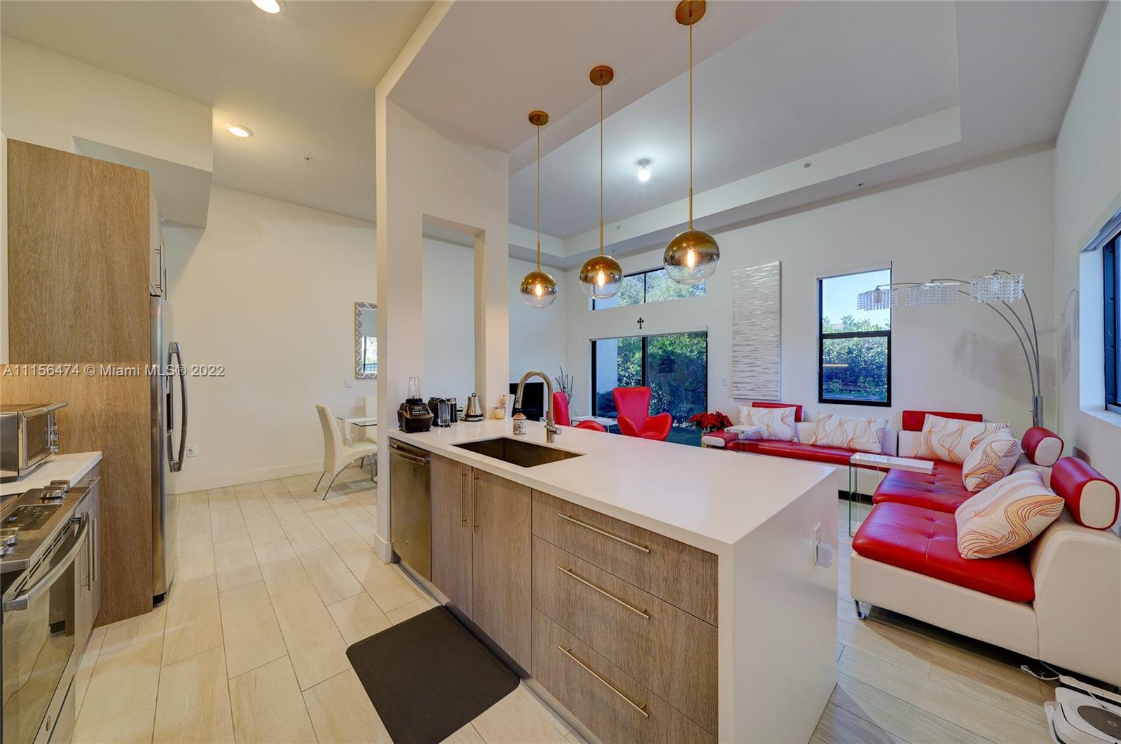 Beautiful townhome located in a gated community that is FHA and VA approved. This Thorin model is a corner unit that allows for entrance privacy and a short walk to the pool and gym. It has 3 bedrooms (all upstairs), 2.5 baths, patio that is accessible from the main living area, high ceilings, nest thermostat and security cameras. High quality, contemporary, state of the art designer accents, custom window shades throughout unit. The kitchen has stainless appliances, European cabinetry and signature island. Ceramic and wood floors throughout. Master bedroom has 2 walk in closets and balcony. Garage is oversized with ultra high ceilings for storage. IMPACT WINDOWS AND DOORS throughout. Clubhouse amenities include pool, fitness center and billiard room.