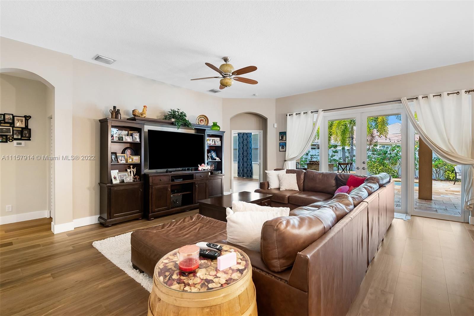 Fantastic opportunity to own this beautiful, updated home in highly sought-after Grand Reserve. This 4-bedroom 2-bathroom home is move in ready. Enjoy this beautiful backyard that is perfect for entertaining with a built in bar and oversized pool. BRAND NEW kitchen with quartz countertops, double ovens and large island. This move in ready home has impact windows and a NEW ac. Walking distance to the Community pool, clubhouse & playground. Close to Top-Rated Schools, shopping, dining & Sawgrass. 4th Bedroom has been converted to a Den, easy to convert back.