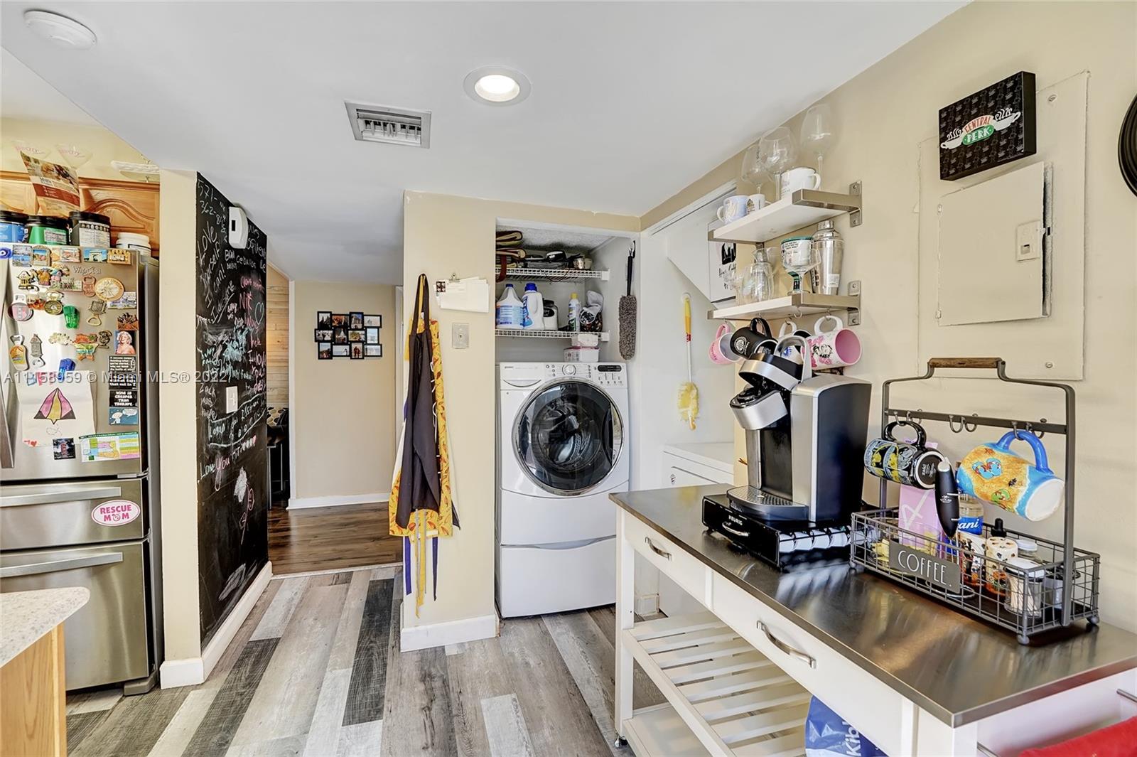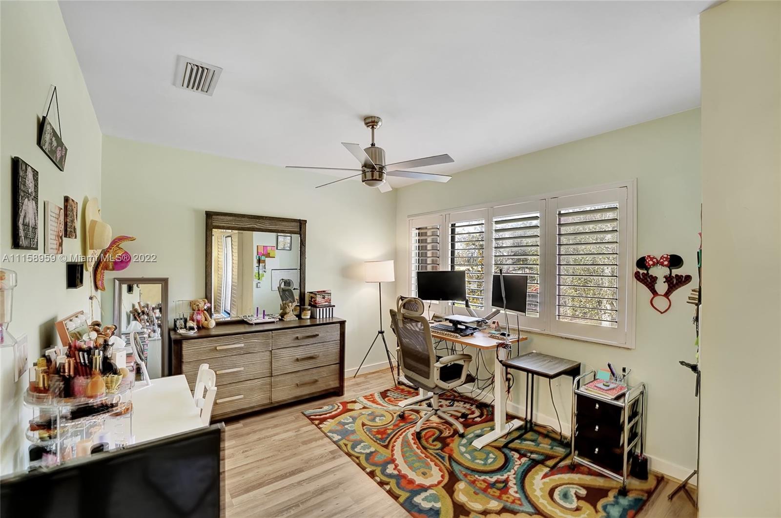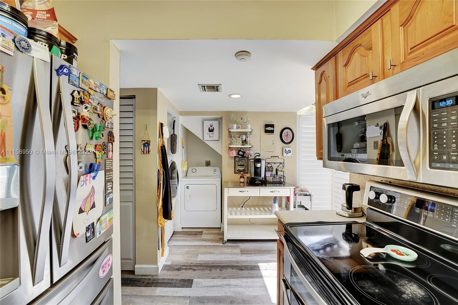 Rare opportunity to own a fully remodeled 3/3 corner lot town home in the exclusive community of Plantation Acres. One full bedroom and one full bath located on the first floor, perfect for entertaining or use as In-Law quarters. Enjoy and over sized master bedroom with space for an office, SS appliances and three updated bathrooms. Beautiful decorative wood-laminate flooring throughout the second floor and tile on the first. Large Master bedroom is located on second floor with an outside balcony. Nice enclosed screened patio perfect for entertaining! Enjoy breakfast and outdoor activities in your half wrap-around front porch. Two assigned parking spaces and a great location in an exclusive area. One block away from American Heritage. Special Assessment PAID!