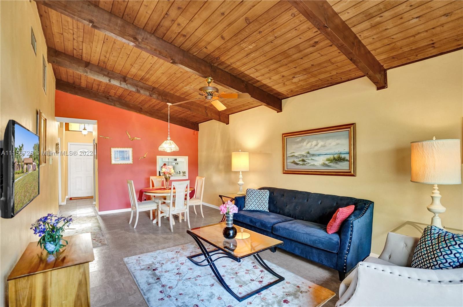 Make this beautiful, move-in ready villa yours today. Located in the revered gated community of Carriage Hills - a 55+ community! Incredible vaulted ceilings with natural wood finish. Tile floors in living area & bathrooms. Tranquil canal views from back patio. Private courtyard entrance. New roof installed in 2019. Short walk to satellite pool & walk around lake to main clubhouse, pool, jacuzzi, tennis courts, exercise room, billiard tables, shuffle board, bocce ball, bingo & bunco nights & more. All furniture is negotiable.