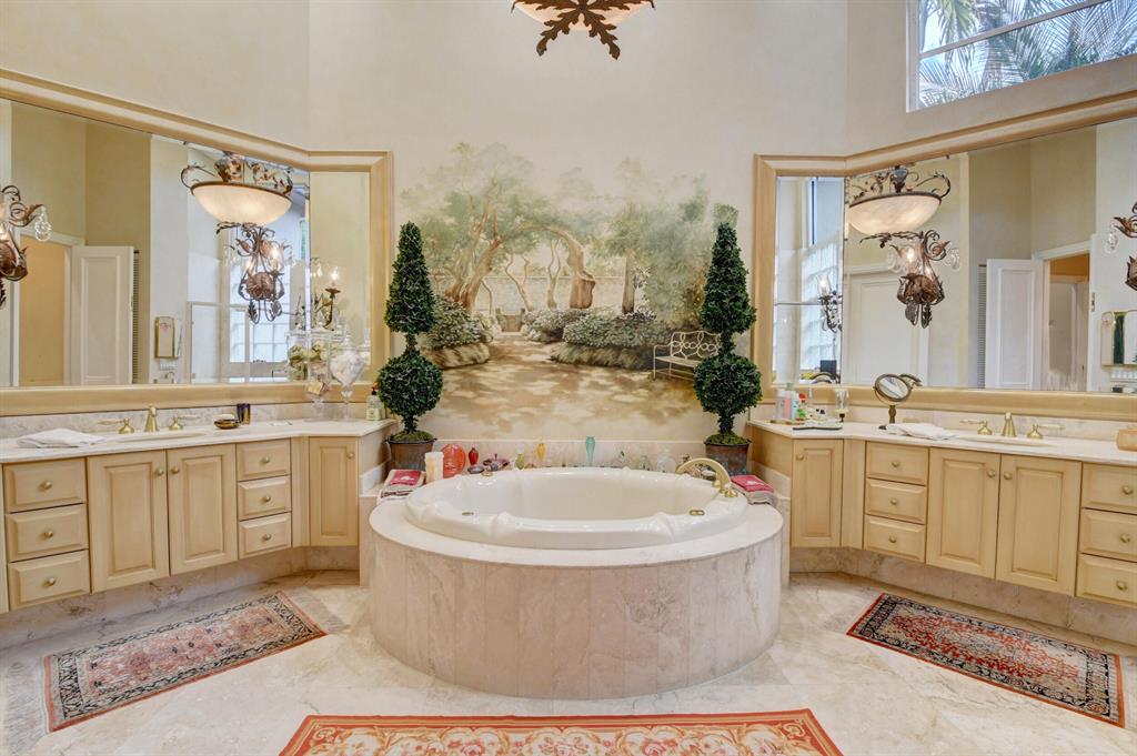This two-story, 6-bedroom + office home is located on an OVERSIZED LOT (0.54 acre) with Southern exposure and beautiful lake views, in the Lake Estates section of St. Andrews CC. The foyer opens to a great room with volume ceilings and floor-to-ceiling windows. Ground-level master suite has his & her walk-in closets, with an oversized closet for her. All guest bedrooms are ensuite. New roof in 2018. Outside are spacious open & covered patio areas, pool with spa, summer kitchen with built-in BBQ, and plenty of lawn space. Long lake views with Southern exposure. Note: Some interior photos have been digitally modified to show the possibilities for the property.