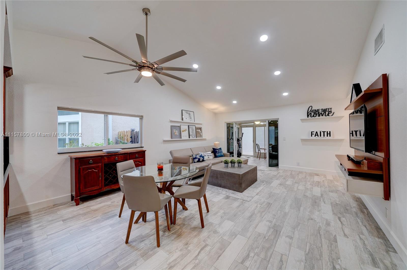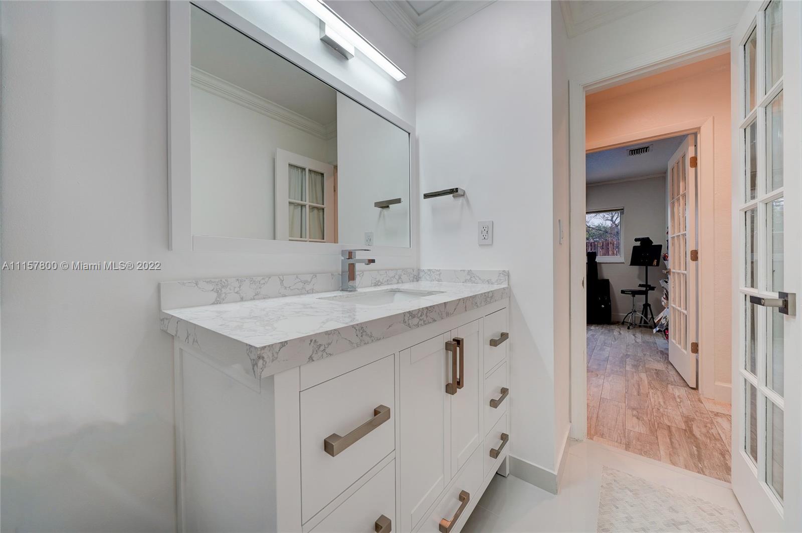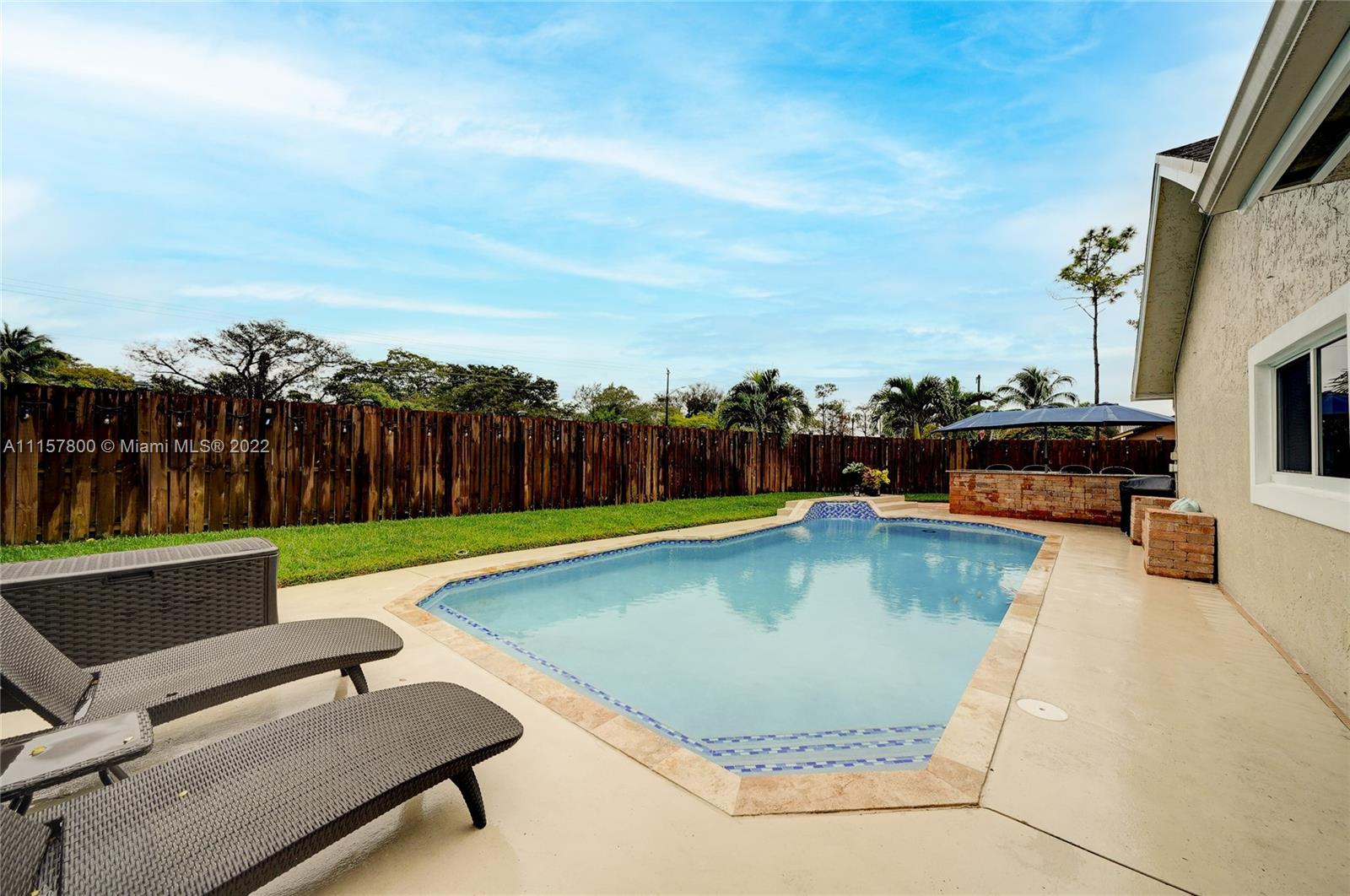 Newly remodeled 3/2 pool no HOA, fenced corner lot with ext. entertaining space, huge paved area, salt pool new Diamond Brite, large deck, LED pool lights, Wi-fi sprinkler, FL room, no popcorn new plank porcelain tile, impact glass/doors, ceiling fans, French BR doors, epoxy gar. floor, built-in work bench/cabinets, two-wall storage system, and overhead rack insulated impact garage door. Custom kitchen wood cabinets full ext. drawers, two lazy Susans, granite/SS. New bathrooms, frameless shower doors, tower shower with body massage jets. Upgrades galore, from outlets with built-in night lights to whole-house tile to exterior lighting. NOTE: All info except sq ft deemed reliable but not guaranteed. MLS defaulted the sq ft to an incorrect unchangeable number, but should say approx 1400 sq ft