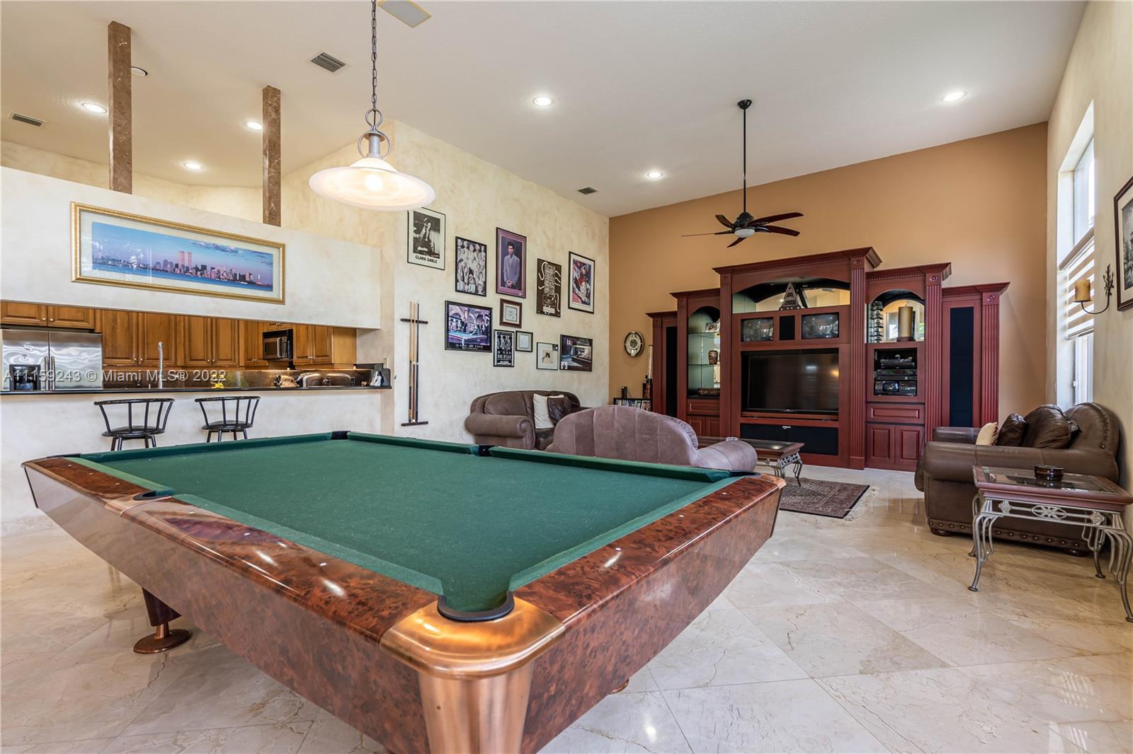 YOUR BEAUTIFUL HOME AWAITS! Spectacular 4/4 (plus 5th room for office/den) with a backyard that boasts an amazing beach entry pool, with a waterfall and massive lake. This lushly landscaped home has privacy in the front of the house, (there is a hill separating the street from Orange Drive) and the back, because of the long lake. Upon entering this home, it showcases soaring ceilings and natural lighting with impressive views of the pool and lake and Stunning Crema Marfil Marble throughout, except the bedrooms. Pool is being completely redone. Home needs TLC and seller is motivated and flexible. Excellent schools. 24 hour notice required.