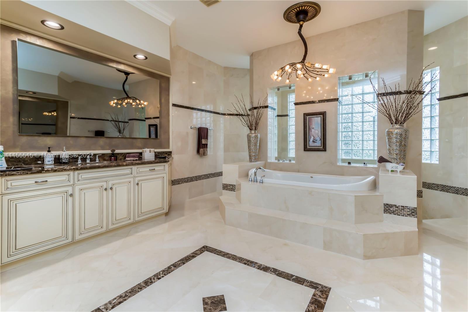 GORGEOUS HOME SITS ON A QUIET CUL DE SAC. ENJOY MOVIE NIGHT WITH YOUR FAMILY IN ITS LARGE CUSTOM THEATER. WOW YOUR FRIENDS WITH YOUR OWN CUSTOM WROUGHT IRON WINE CLOSET & CUSTOM BAR. MASTER BEDROOM FEATURES 2 MASSIVE CLOSETS W/ BEAUTIFUL WOOD TILE. COMMON AREAS FEATURE GORGEOUS MARBLE FLOORING, CROWN MOLDINGS, & TRAY CEILINGS. LARGE KITCHEN HAS AN ENORMOUS AMOUNT OF STORAGE & COUNTERSPACE W BEAUTIFUL GRANITE COUNTERTOPS & CENTER ISLAND. ENJOY YOUR OUTDOOR SUMMER KITCHEN UNDER THE TIKI HUT WHICH INCLUDES 2 FLAT SCREEN TVS, SURROUND SOUND, & A BUILT IN GRILL, PERFECT FOR ENTERTAINING. THIS HOME SITS ON AN OVERSIZED LOT W NO NEIGHBORS BEHIND, ULTIMATE PRIVACY & BEAUTIFUL VIEWS. BRAND NEW ROOF, HURRICANE IMPACT WINDOWS. 3 CAR GARAGE W NEW EPOXY FLOORING & ELECTRICAL CAR CHARGER