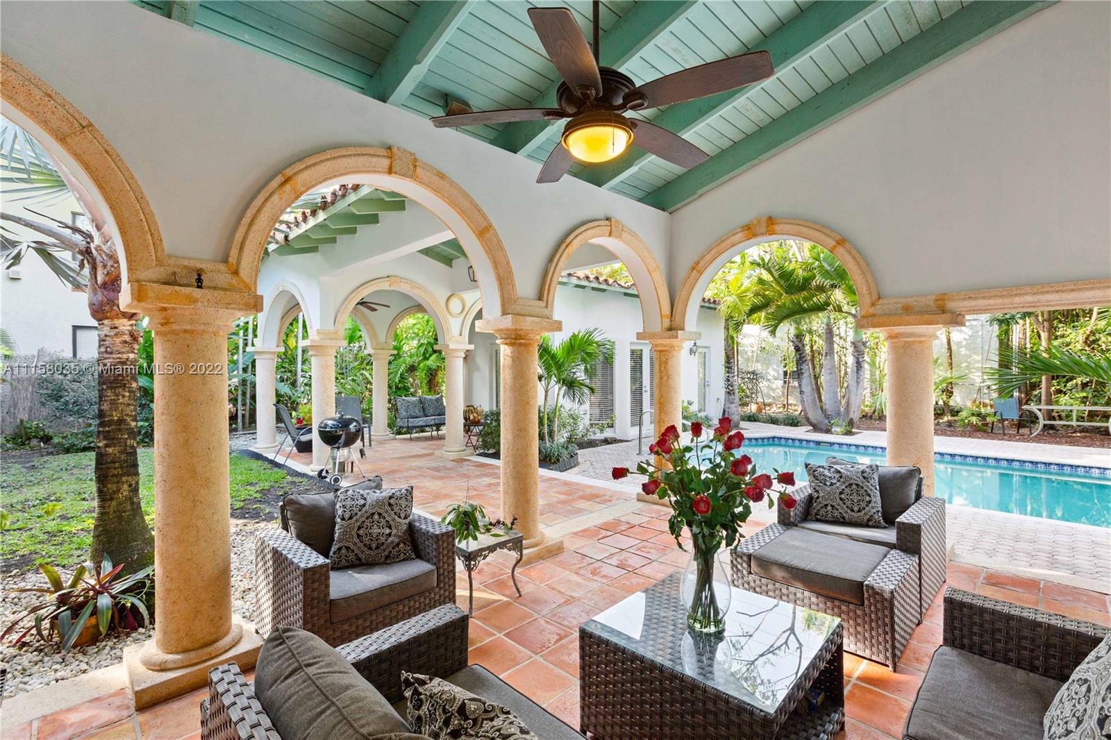 Nestled in the lush palm trees, on a beautiful 15000 sqft lot, sits this beautiful example of Coral Gables Old Spanish architecture. 4-bedrooms, 3-baths in the main home plus a 1-bedroom, 1-Bath Casita overlooking the pool. Built in 1937, this home has amazing outdoor spaces; large front yard, walled in patio and yard surrounding the beautiful arches of the generous covered patio. High ceilings, some Impact windows and plenty of room to expand. This home has a huge kitchen and is waiting for a caring owner to make it their own. This home will not last.
