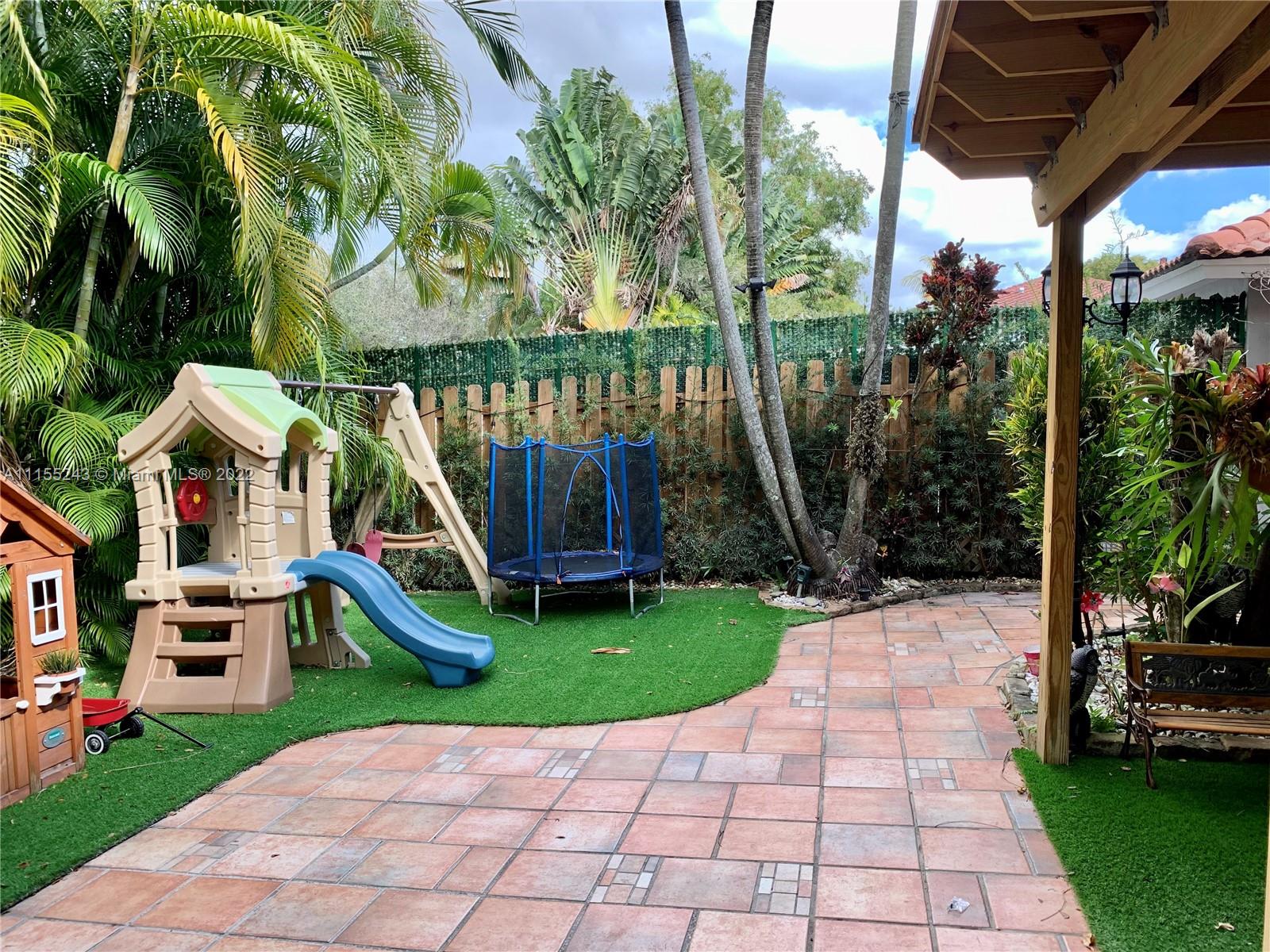 Unique 4/3 Corner SF Home Totally Upgraded in the gated community of Doral Pines. Home features your Huge Dream Kitchen with Stainless Steel Appliances, Wall Oven, Granite Counter Tops and Wine Cooler. New A/C with Purifier Included, Security Cameras, Ring System, Doble Impact Windows Polarized, Electric Chimney in Living Room and Master Bedroom, Well with Filter System for Landscaping and Jacuzzi and much more. Garage is converted to an indoor Laundry Room + a Den/Guest Room. Doble Impact Windows Polarized. Relax in your private, lush and tropical oasis with a Jacuzzi, Shower, Play Area and Outdoor Kitchen or Community Pool or in the amenities of the Doral Park County Club with Pool, Tennis, Gym, Bar and Rest. A+ SCHOOLS. LOW ASSOC FEE. Tvs Not Included. NOT CONTINGENT TO APPRAISAL!