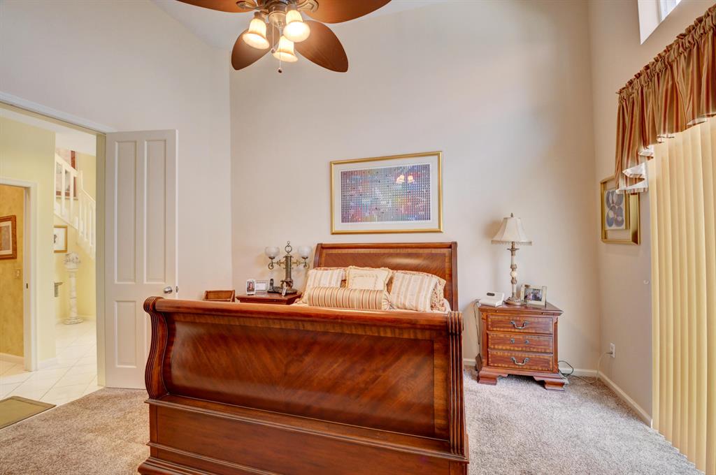Immaculately maintained 2 story home with master on 1st floor. Light and bright with 14 ft ceilings with natural lighting. Granite counters in the eat-in kitchen. 2 bedrooms with ensuite baths upstairs. One of these bedrooms has 2 walk-in closets and could be a 2nd master. Greatroom layout. Large patio with beautiful new landscaping. New A/C with generator.