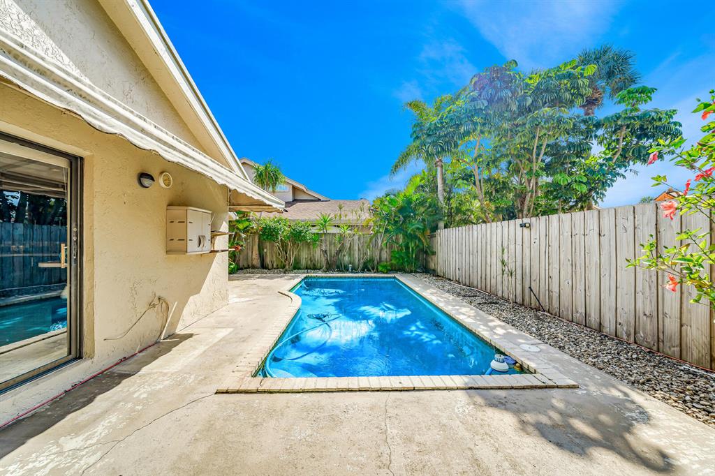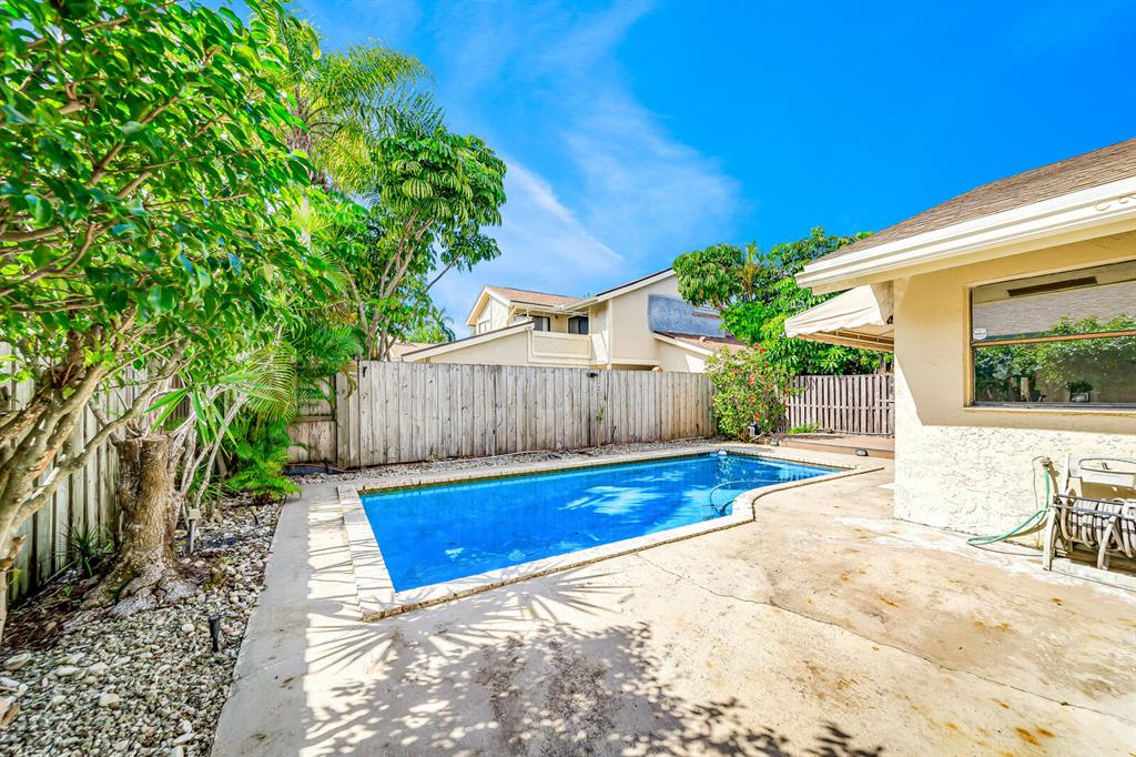 Centrally located in Boca Raton,one story Villa/Townhome w/vaulted ceilings & open floor plan. Walk in through your own gated private courtyard w/tons of landscaping or through the 2 car garage. Featuring 3 bedrooms, 2 bathrooms, & a sparkling POOL! The living room is open and features high ceilings, a fireplace, tons of light from all the windows/sliders, & a sky light. Eat in Kitchen. Huge master bedroom with oversized walk-in closet, patio & pool off the master. Large back yard/private patio w/pool and greenery. New Roof (2017)! New Hot Water Heater (2019)! New garage door (2014)! Great location! Walk to Amazing Del Prado Elementary & places of worship. Low HOA fee only$265/month includes exterior paint, lawn, basic cable, community pool, pet friendly and all ages ok.