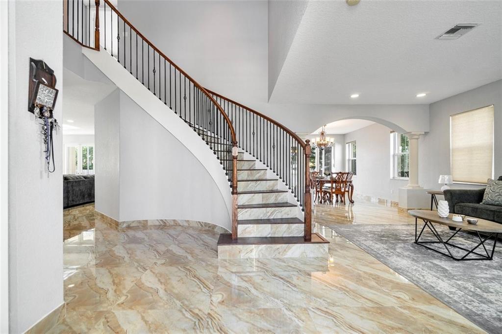 LUXURIOUS & SPACIOUS WATERFRONT HOME IN DESIREABLE GATED RIVIERA ISLES COMMUNITY W/RESORT STYLE AMMENITIES.ENTER THRU DOUBLE GRAND DOORS TO A BEAUTIFUL PORCELIAN STAIRCASE W/ ROD IRON & SOARING CATHEDRAL CEILINGS, EXQUISITE PORCELIAN TILES TROUGHOUT. FORMAL DINING ROOM GOURMET KITCHEN HAS NEW 42" WOOD CABINETS, APPLIANCES,GRANITE COUNTERTOPS & ISLAND, INCLUDING A HUGE FAMILY ROOM W/A SPACIOUS SITTING AREA OVERLOOKS THE SERENE LAKE. SECOND FLOOR HAS GERMAN LAMINATED WOOD FLOOR.UPSTAIRS HAS A HUGE MASTER SUITE W FULL BALCONY LENGTH OF THE HOUSE OVERLOOKS LAKE & SUNSETS. WOODEN WALK IN CLOSETS + STORAGE. THE MASTER BATH HAS A SEPARATE SOAK TUB, HIS & HERS SEPARATE BATHROOM SINK ALONG WITH A SHOWER. THERE ARE 2 BRAND NEW AIR CONDITIONERS FOR BOTH FLOORS, ALL NEW PLUMBING THROUOUT THE HOME. SEE