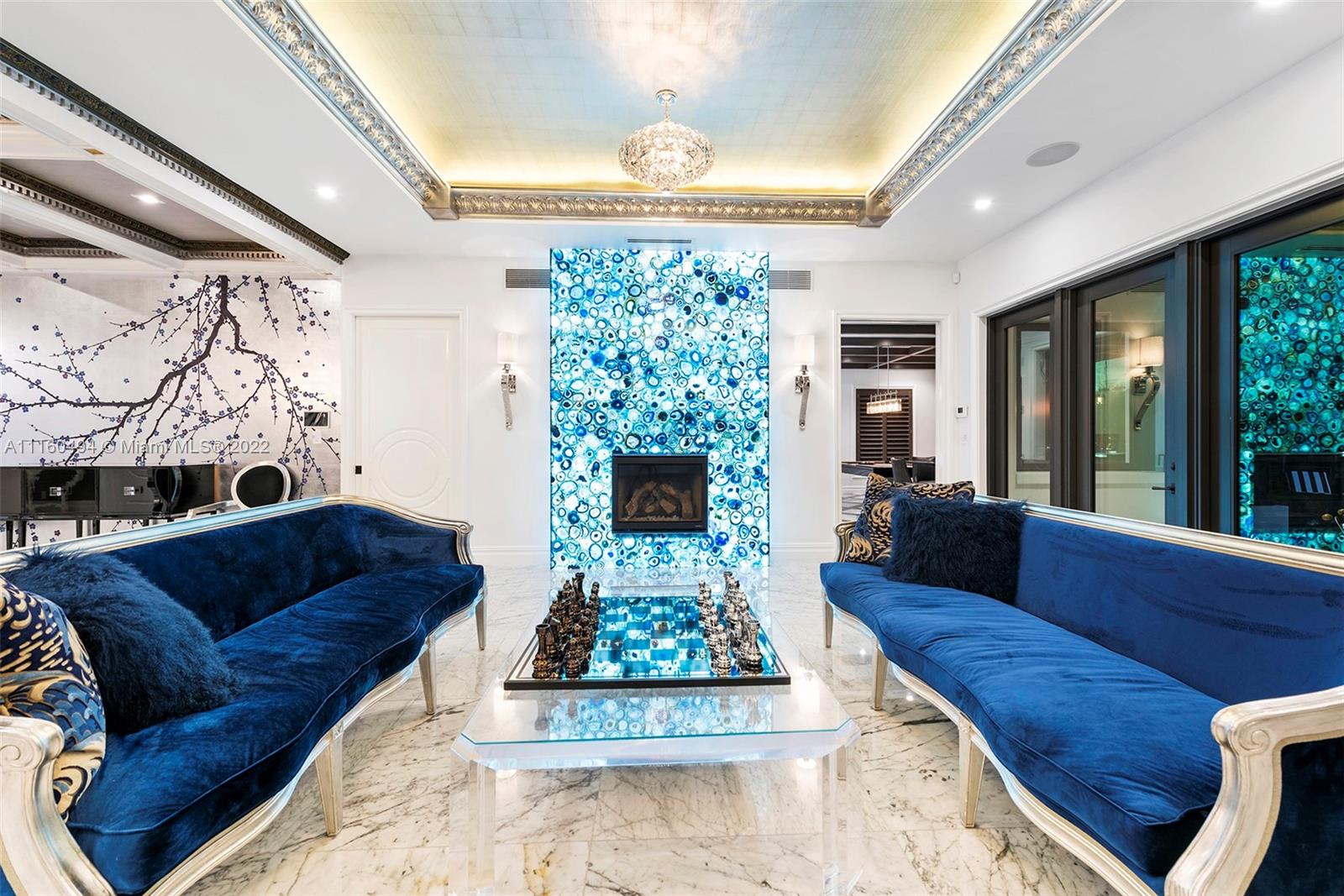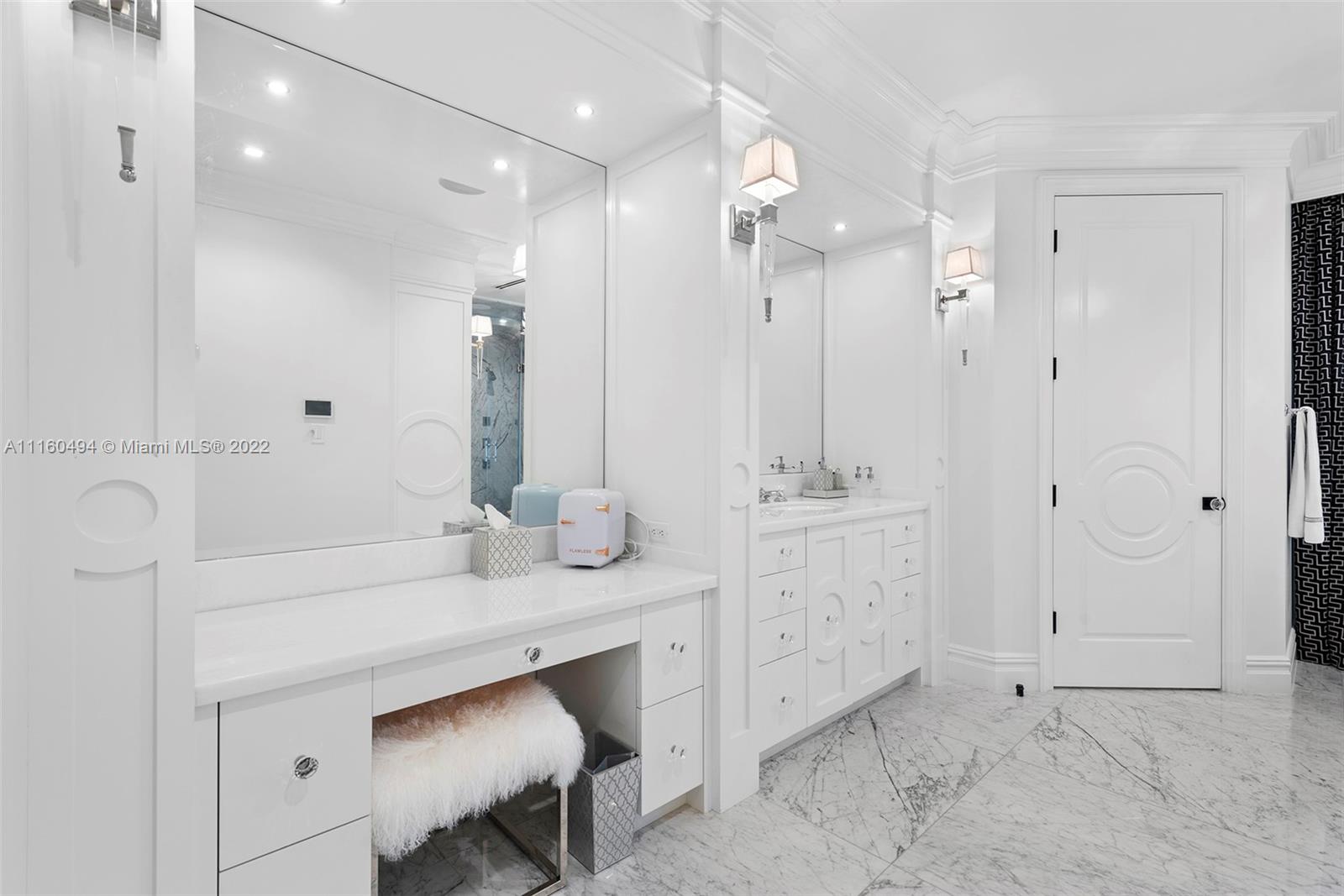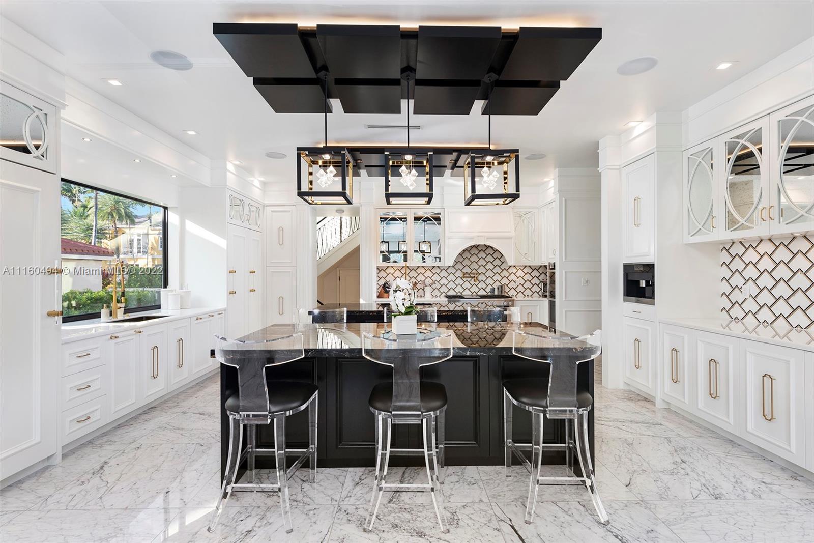 A custom, brand new one of a kind masterfully created waterfront mansion in the heart of Seven Isles, Ft. Lauderdale, the yacht capital of the world. No expenses spared in this timelessly designed home featuring a grand double height entryway, a thoughtful floorplan, oversized rooms, and a grand master chefs kitchen with double Nero Portoro marble islands with rare gold lining. Amenities include a quartzite bar rivaling your best local commercial bar, a movie theatre fit for royalty, a snow marble backyard and 90 ft boat dock, and a breathtaking infinity tiled pool and jacuzzi making this oasis complete. The principle quarters open up by double doors spanning the whole width of the home to a private foyer with a warm large bedroom, and two massive walk in closets. Offered turnkey furnished