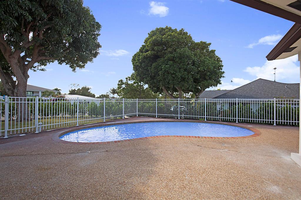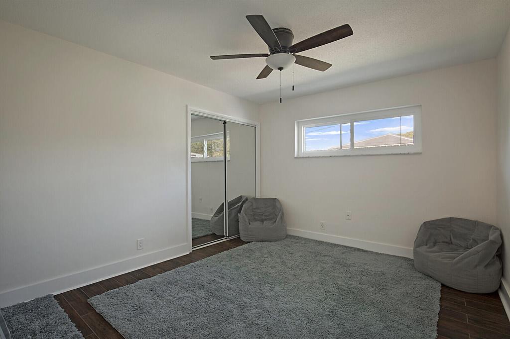 This East Boca 3 bed, 2 bath gem of a home has been fully renovated and features high end upgrades and design details throughout. Situated on an oversized corner lot, this home offers stunning curb appeal and fresh exterior paint. Upon entering you will be impressed with the open living space, high end wood-look tile, fresh neutral paint and luxurious architectural design upgrades throughout such as chair rail, wainscoting, custom door and window framing, and high-end ceiling fan in the living area. The brand new kitchen offers upscale stainless appliance and modern stone counters. A lovely coffee bar and mid-century fireplace complete the living area, while the dining room features built in storage along the tiled wall as well as a high end custom millwork accent wall. The fully upgraded