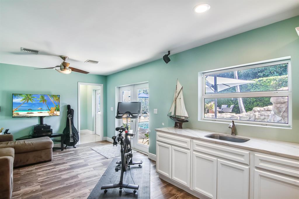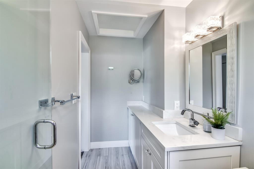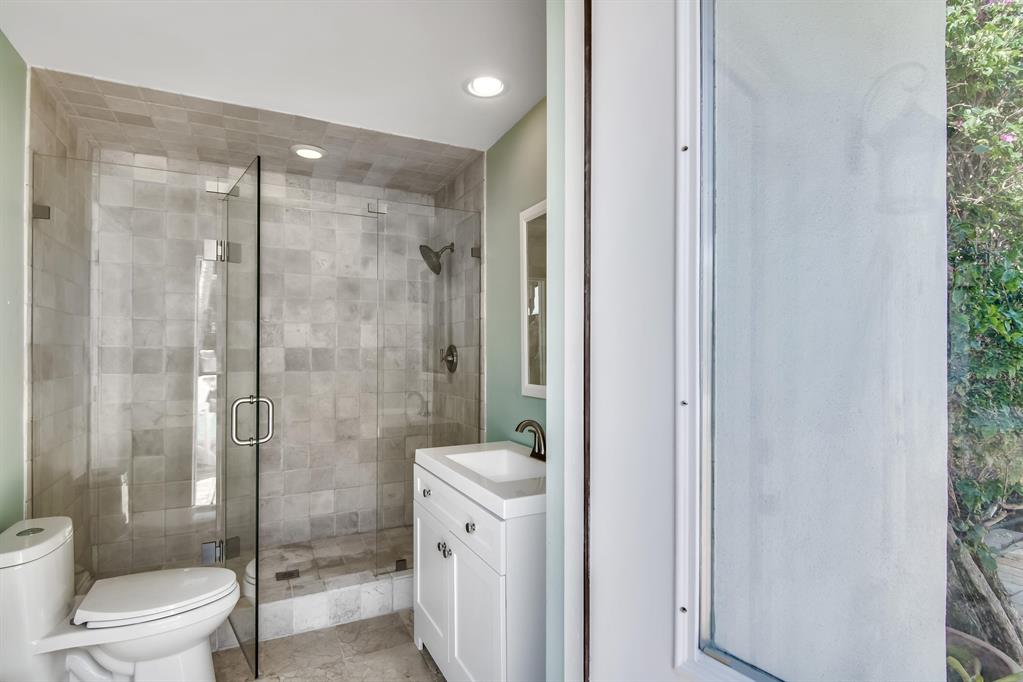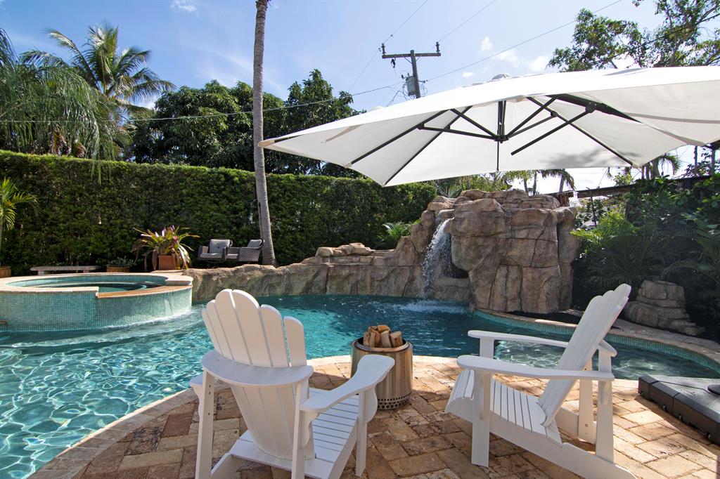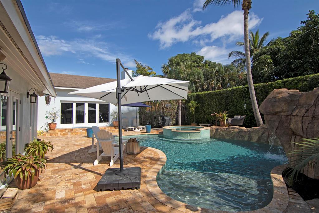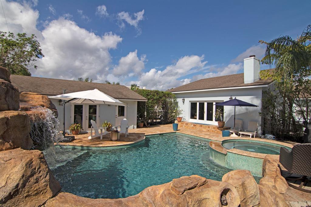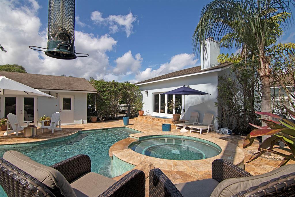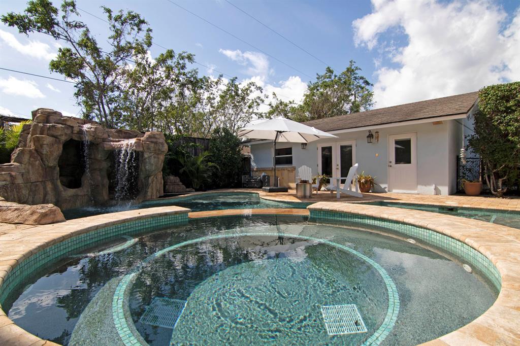 Located in the heart of historic West Palm Beach this totally renovated 3 bedroom 2 bath home has an awesome open floor plan making the kitchen, dining and family rooms one huge space with soaring ceilings. Through impact glass double doors you transition into a resort style backyard with a spectacular heated spa/pool, a large sun deck and a beautiful cascading waterfall/grotto flanked by a fully efficient 1 bedroom guest house with a large kitchen/living area, a cabana bath and a spacious garage. The southern exposure lot is 75 x 127 and the structures are non conforming leaving the future wide open for new construction.