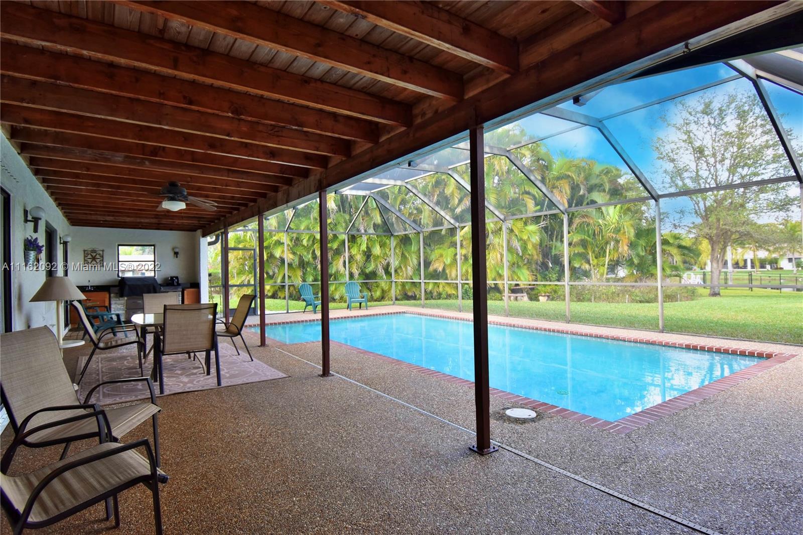 South Florida / Expansive WaterFront& Pool - One Story- 2,900 sqft2 Aprx. & 23,000 sqtf2 Aprox of land & corner Lot .Enjoy sunsets overlooking your oversized backyard and one of the best water views in Coral Springs! Open floor plan.Newer Impact Windows.Bathrooms with walk-in showers & cabana to Pool. 8 car Parking Near schools, shopping and restaurants, extra refrigerator & hurricane door, Master en-suite & 3 beds with all walk in closets, family room with vaulted natural beamed ceiling, int. coral rock wall, and custom-built wood wall unit. Kitchen includes granite counter tops, S/S refrigerator and dishwasher, pantry, and a custom island.Laundry room with washer/dryer. Beautiful landscaped lot with mango & lemon trees, sprinkler system from lake & sparkling screened-in pool and patio.