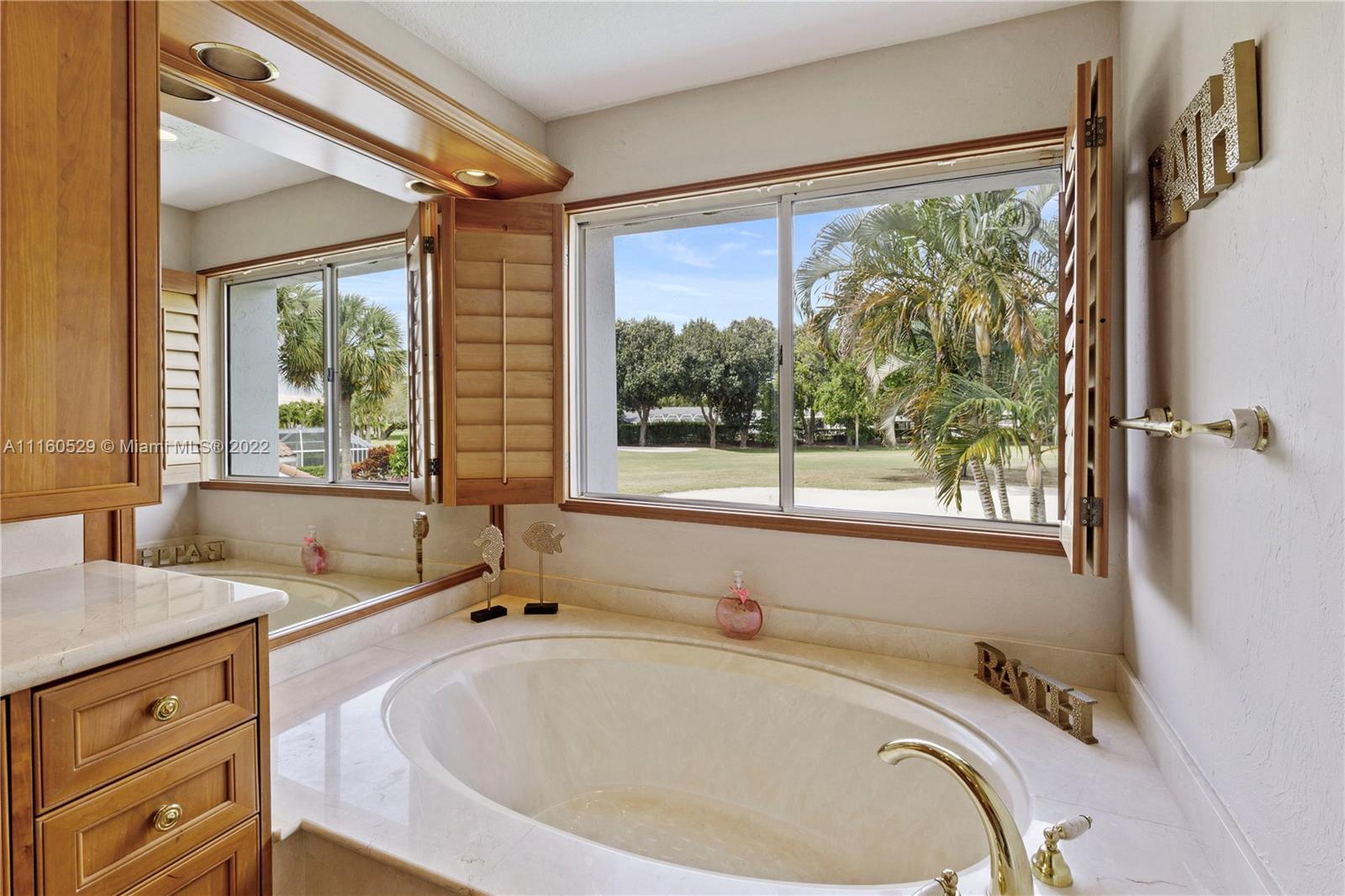 Rare to market, biggest Tiffany Trace layout. 21ft Pool. 5 bedrooms upstairs. Large living area and breakfast / office nook in the kitchen. 2 car garage. Beautiful golf course views. Primary bedroom w Pecky Cypress vaulted ceiling, oversized bathroom, office / den area overlooking the golf course, huge walk in closet. Great storage throughout. 2 full bathrooms upstairs, 1 ensuite in the primary bedroom. 1/2 bath downstairs. Sharing grounds with the new Boca Raton Golf & Racquet Club - the City of Boca is investing 7 - 8 million dollars. The Club boosts an excellent 18 hole golf course, hard tru tennis courts and pickle ball coming soon. Well run HOA with no club membership required. Put your personal touch on this rare, spacious gem in an amazing sought after community in a prime location.
