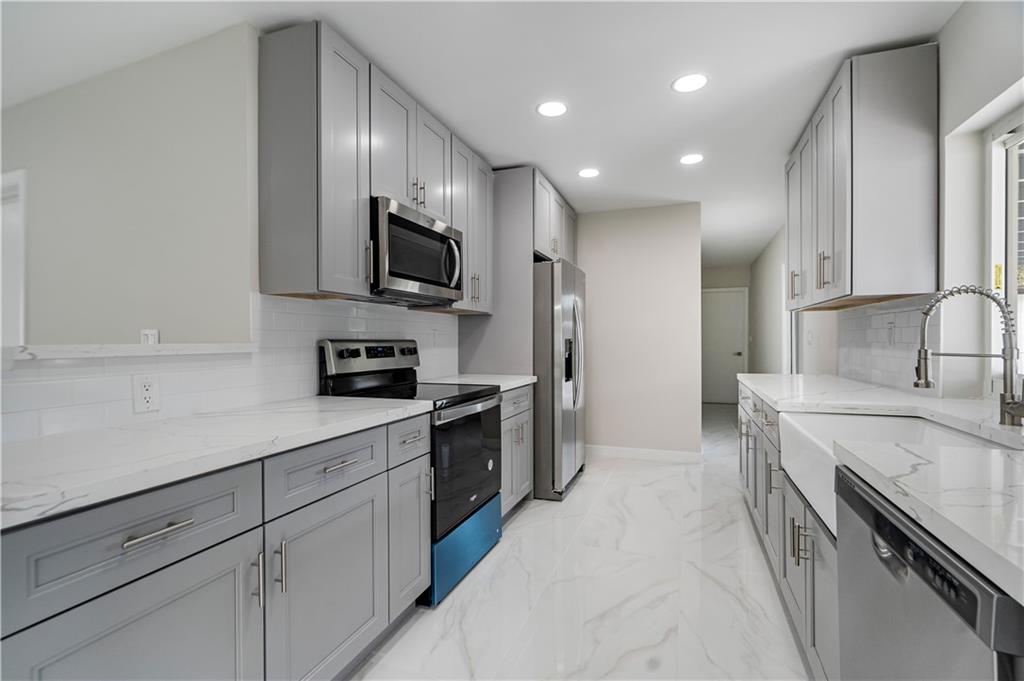 Welcome to your new home in the highly sought after Royal Palm Estates with BRAND NEW EVERYTHING! Walk in and find beautiful, oversized porcelain tiles wall to wall throughout the house. Kitchen with NEW stainless steel appliances and NEW Calcatta marble countertops. NEW impact windows and doors! Master suite has NEW luxurious shower with double shower heads and wands. Enjoy your spacious backyard with over 2000 sq ft. of NEW Limestone deck and refinished pool! NEW Trane AC that keeps your house nice and cool.