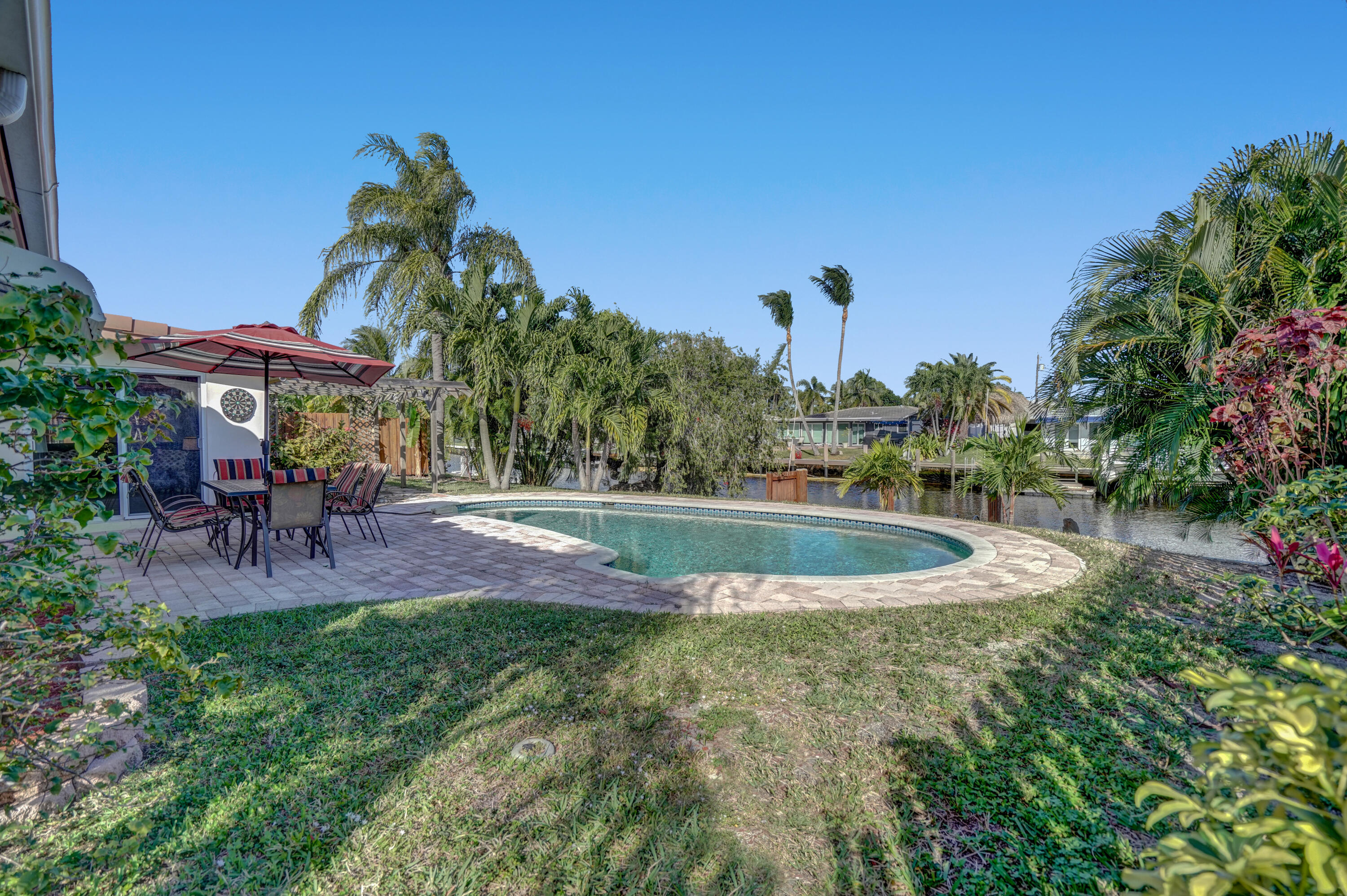 You are going to fall in LOVE with this home the moment you enter. This well maintained CBS waterfront pool home with ocean access is move-in ready and has 70 ft of water frontage. It is minutes from the Intracoastal. The home features a large fenced in yard with your own private dock, a tropical pool with an east exposure, impact windows, large enclosed sunny Florida room and an interior laundry room. The kitchen has been updated with granite countertops and SS appliances. Enjoy days filled with swimming in your sparkling blue pool with expansive wide water views. Easy access to the Intracoastal & restaurants. Just 10 minutes to the beach, pier and trendy restaurants. Don't miss your opportunity to own your slice of paradise.