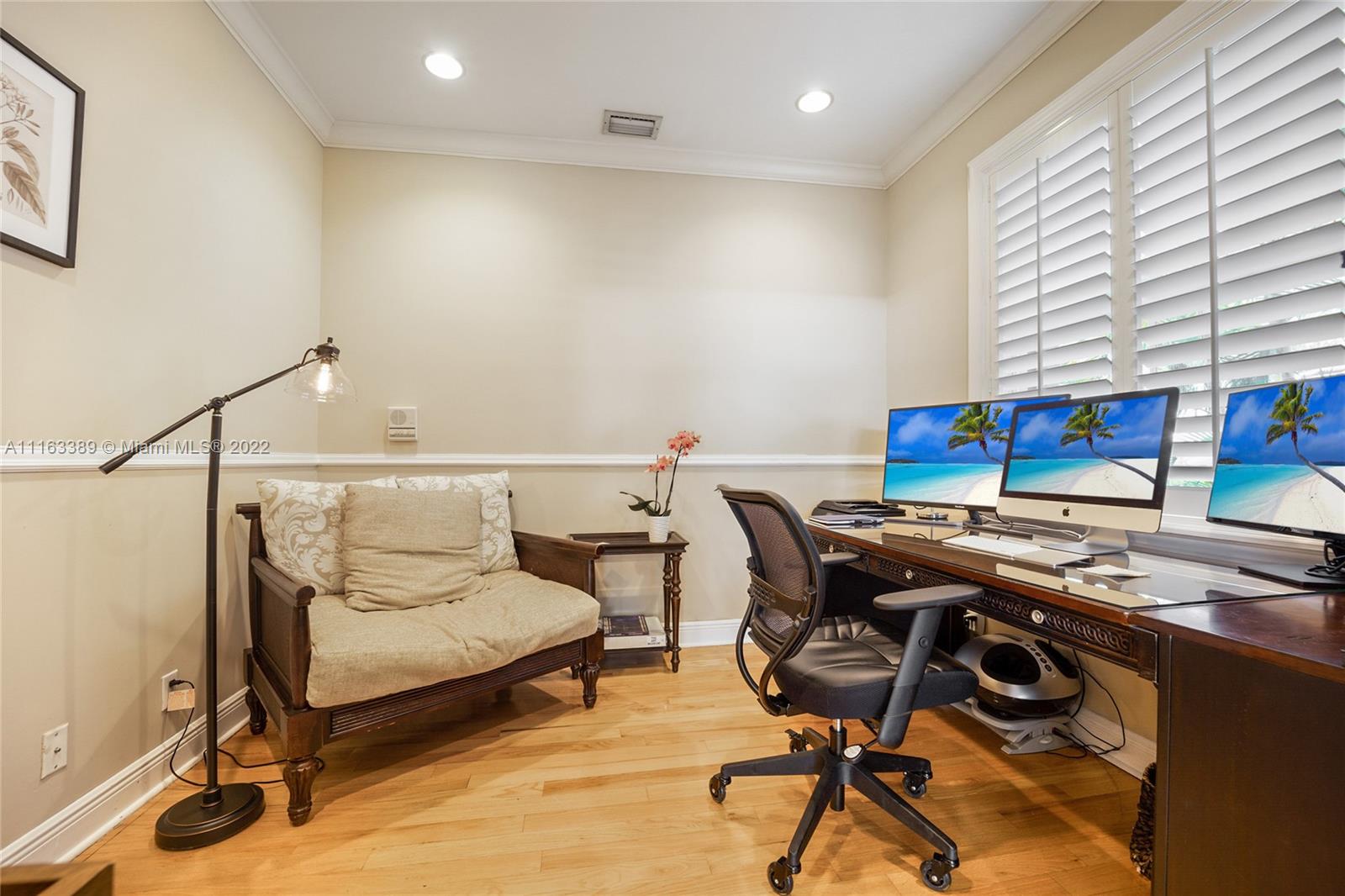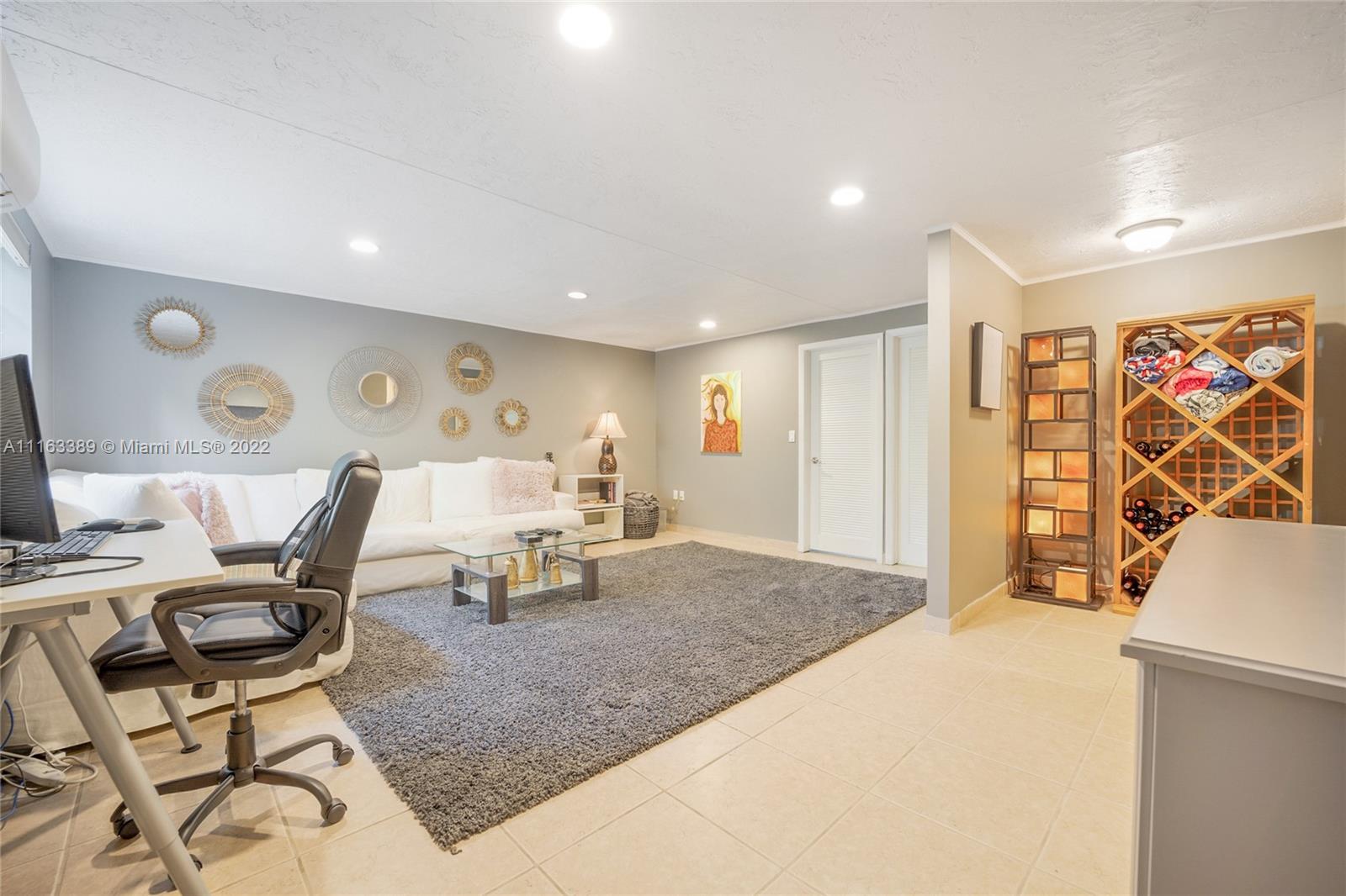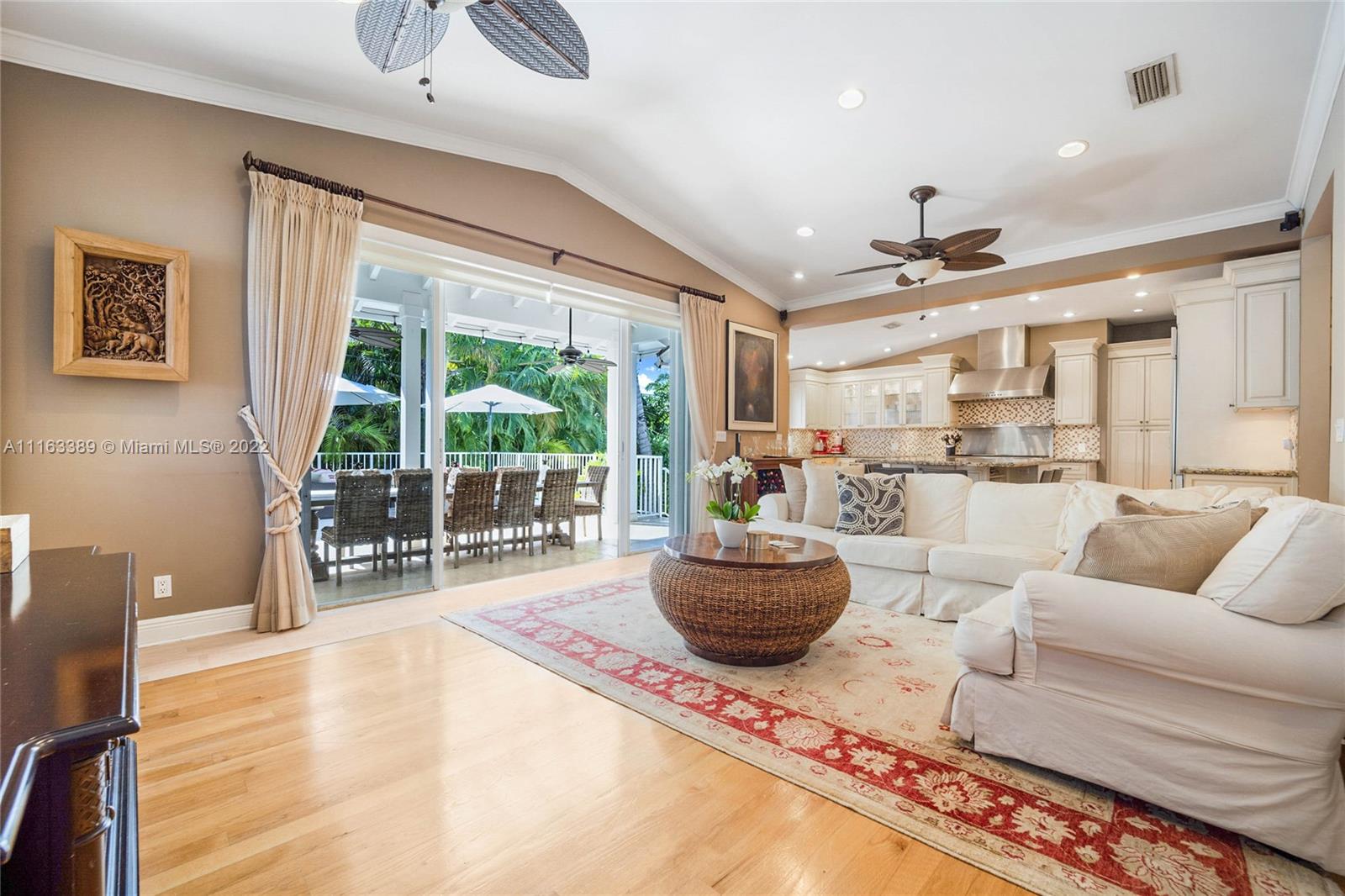 Beautiful elevated Key West style split level home located on the very desirable Myrtlewood Lane. Open layout with vaulted ceilings, combining spacious family room with large, beautiful kitchen equipped with high end appliances. Separate formal living room and dining room. 4 Bedrooms (fourth bedroom converted into an office) and 3 1/2 bath bathrooms. Double car garage converted into extra bedroom, full size bathroom and entertainment room. Family room opens to ample outside area with tiled sundeck and patio with Chicago brick pavers. New roof (2018). Hurricane shutters. Hard wood floors. Full house generator. Great house for entertaining. Beach Club membership. Seller will assign all interest in Grand Bay Club membership to buyer (pool, beach, etc.), subject to Club approval.