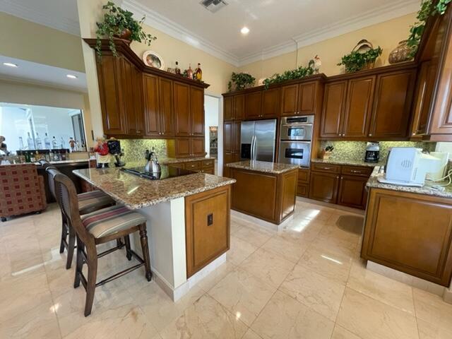 RARELY available Five Bedroom Home with Long Lake Views, and a social membership. Elegantly updated and decorated by a private interior designer in all neutral colors. The spectacular views begin the moment you open the front door and enter your formal living area. Grand entry, volume ceilings, gorgeous marble floors, portable generator, whole house water system and freshly painted inside and out are just a few of the characteristics this home boasts. Certified Mold Free Home. Don't miss seeing this lovely home. Stonebridge Country Club is a mandatory membership club.