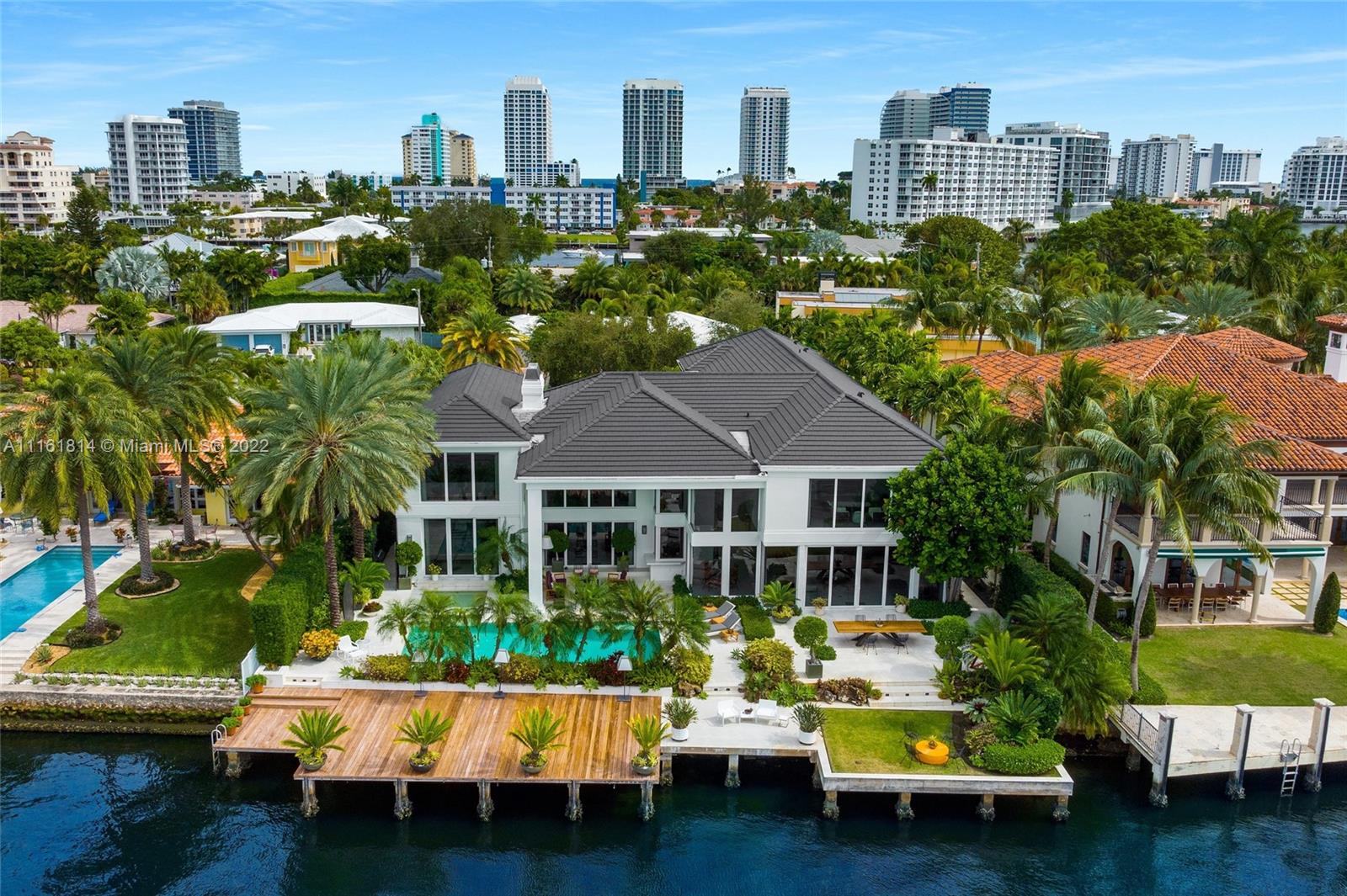 Impeccably located along the Middle River within Fort Lauderdale’s alluring Sunrise Intracoastal gated community sits 555 Middle River Drive, a stunning waterfront estate with an abundance of bravado, elegance and commanding waterfront views. The palatial 7 bedroom, 8/2 bathroom estate home makes extensive use of natural light, glass & wood elements, each distinctly appointed with exceptionally spacious modern design, flourishing open living spaces and towering 21' ceilings. Complemented by a private guest apartment above the home’s 3-car garage, the incredible 2-story extended master bedroom suite overlooks the estate’s tropical zen garden and lavish rear patio with outdoor kitchen, pool and direct, unfettered access to the Intracoastal and Atlantic Ocean. A true yachter’s paradise.