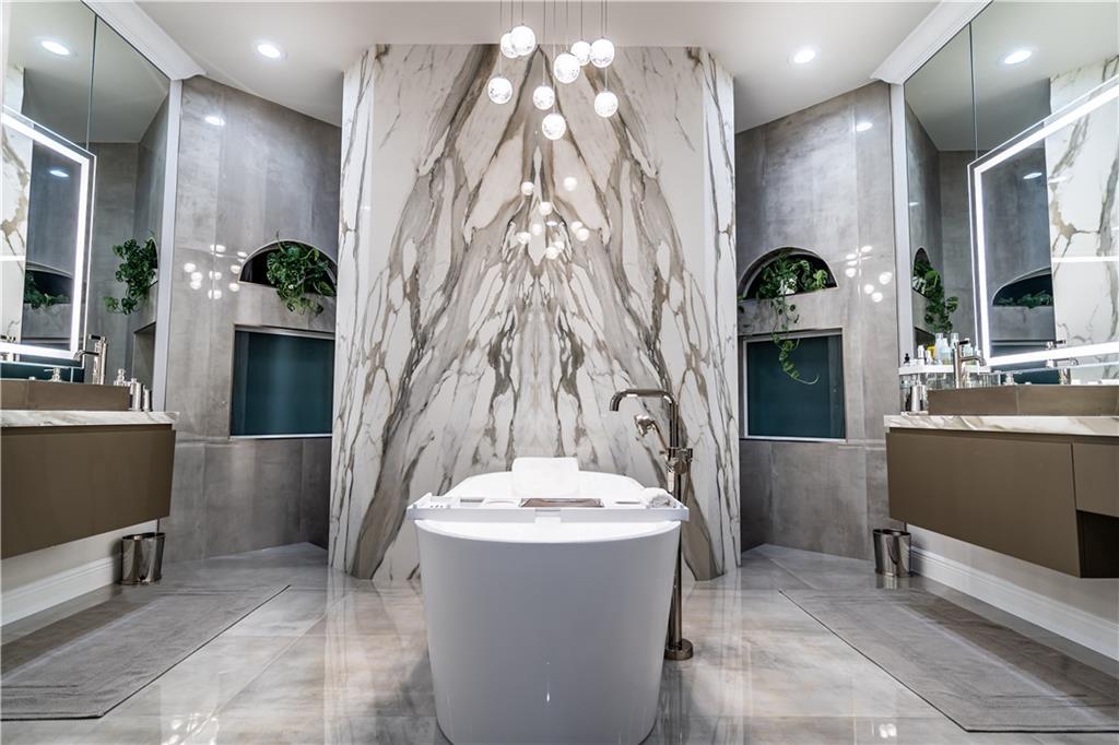 Stunning home, nothing like it on the market. Shows like a luxury resort. Spectacular 4 bedrooms 4 1/2 bath. First floor master bedroom has 2 huge walk in closets and bathroom that feels and looks like spa. Top of the line Italian porcelain floors runs throughout the main level of the home. Gorgeous wood floors on stairs and second level. Huge walled back yard, brand new marble pavers and an enormous salt water pool that has two sun shelves and hot tub. Professional outdoor kitchen and bar station. Custom kitchen, latest appliances, 48inch range, large pantry room and tons of storage. Oversized laundry with two washing machines, brand new generex generator powers whole house, 3 car garage with Apoxy flooring and lots of storage, lots of attic space. To much to list. A must see.