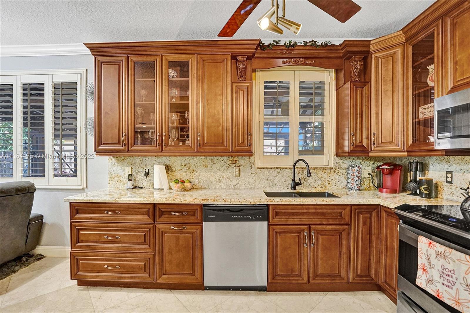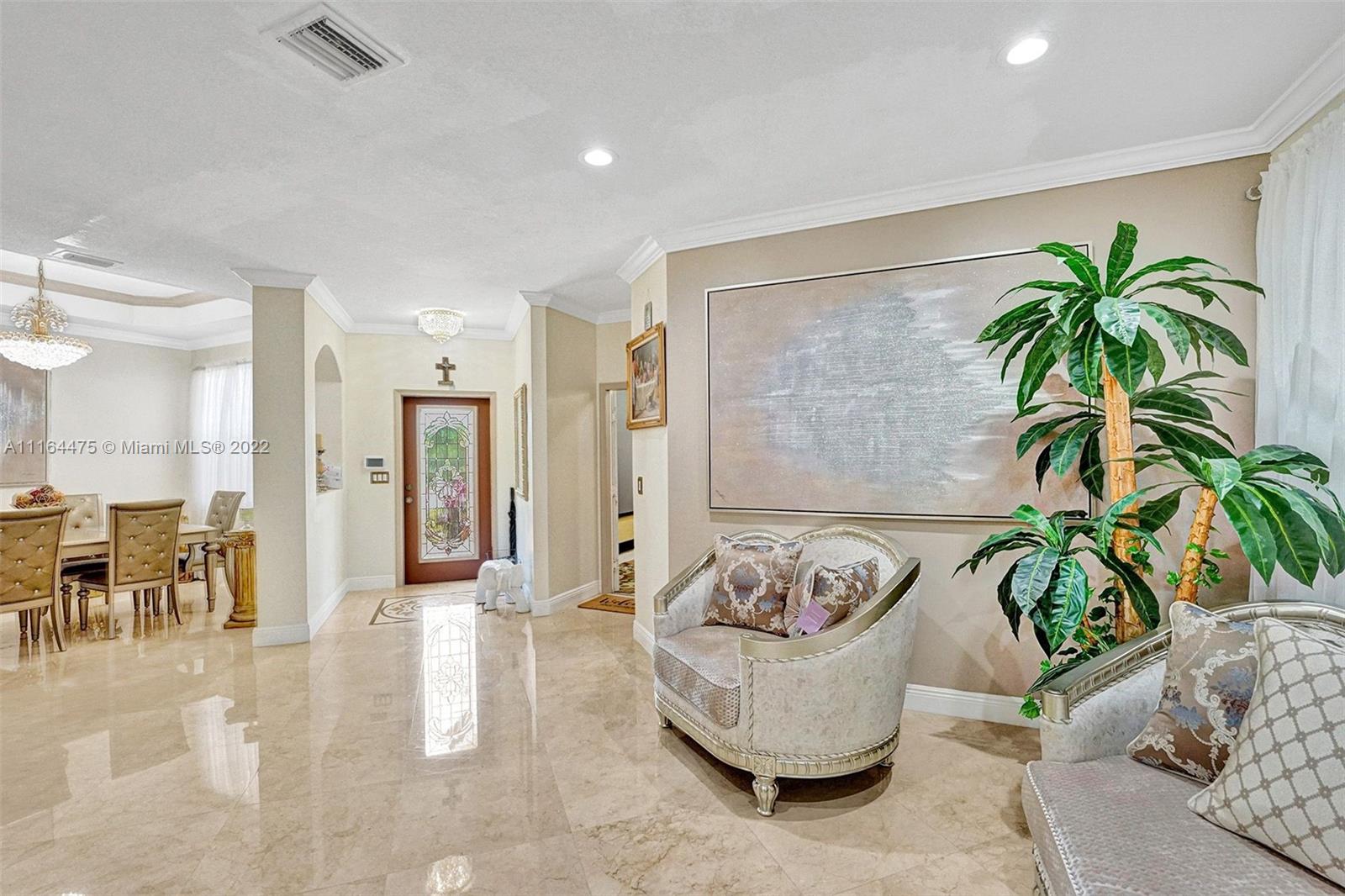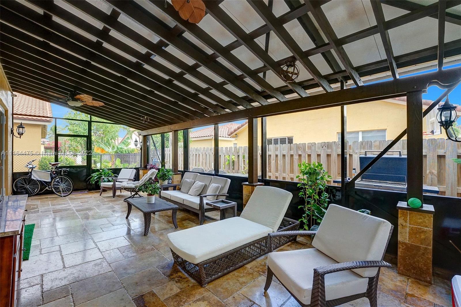 TENANT OCCUPIED UNTIL SEPTEMBER! Beautiful, updated corner lot home in the sought after community Vizcaya-Camelot. Features 4 bedroom, 2 and 1/2 bathrooms, marble floors throughout 1st floor, dining room. Garage was a previously a movie theatre room and can be converted back. Real wood cabinetry in kitchen, all bathrooms completely remolded, pergalo screened patio. Don't miss out on this beautiful home!