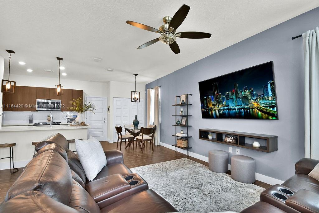Contemporary 3/2.5 in the heart of Downtown Doral in Urbana! Corner unit located at the end of Paseo with 2 car garage. Property features upgraded flooring, and kitchen as well as impact windows and doors, modern finishes throughout the unit. Impeccable unit. Clubhouse features resort style pool, state of the art gym, basketball court, kids splash pad, private game rooms, and much more.