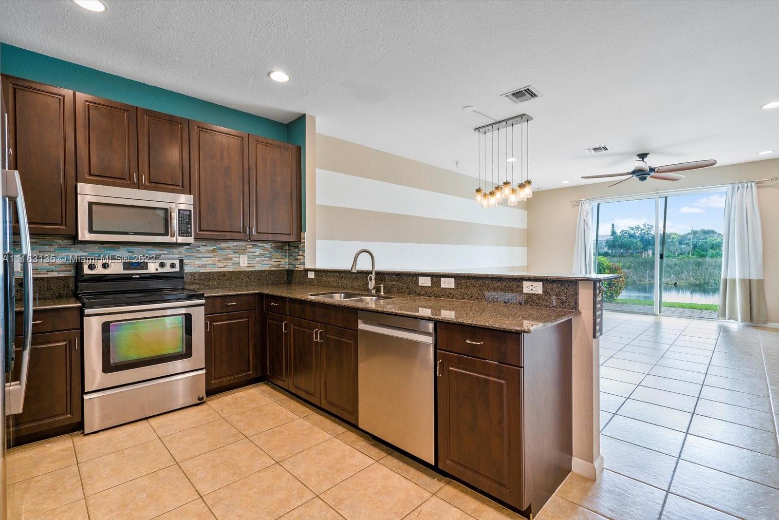 Beautifully upgraded townhome with water and preserve views! Spacious kitchen features granite counters, tile backsplash, stainless steel appliances including a new dishwasher, and opens to the living area. All bedrooms are located upstairs, along with a full secondary bathroom. Primary suite features large walk-in closet, dual sinks in bathroom, and large shower. New washer and dryer included! Step outside to the open patio and enjoy serene water view. Community amenities include pool and playground. Walking distance to shops and restaurants!