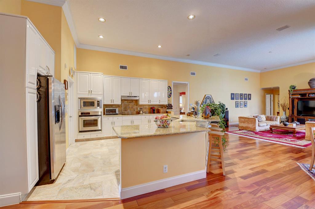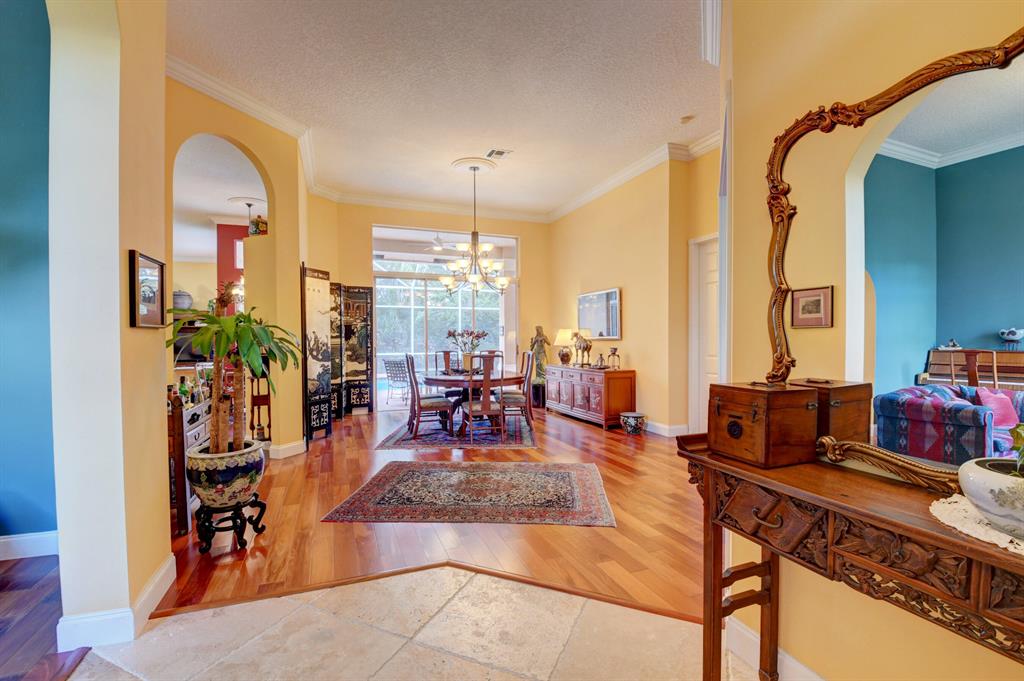 This remarkable home, situated on a quiet interior lot, features the open and airy floor plan of the sought-after Grand Cayman V model in the very desirable community of Boca Isles North. This total 3,660 sq. ft. house features 4 bedrooms with a convertible den, 3 full bathrooms, one of which is a cabana bath; and an exceptionally large family room. The split-bedroom floor plan features an especially large master suite with dual closets, dual sinks, a whirlpool tub, separate shower, and a WC. The kitchen offers ample cabinetry space, large custom granite countertops, and Frigidaire/Thermador SS appliances. Beautiful wood flooring throughout the house, with travertine tile in the kitchen and foyer. A spacious patio with a large pool, all screened-in and surrounded by lush landscaping.