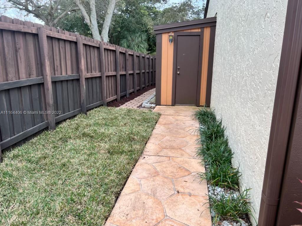 Corner unit with loft in the Cedarwoods development of Pembroke Lakes. Unit is move in ready in a pet friendly community. Vaulted ceilings throughout. Porcelain tile through out the home. Updated Kitchen and Baths. Split bedrooms. Kitchen oversees main living area. Electric lights and power available in shed. Security cameras on all four corners. Spacious master suit with large walk in closets.