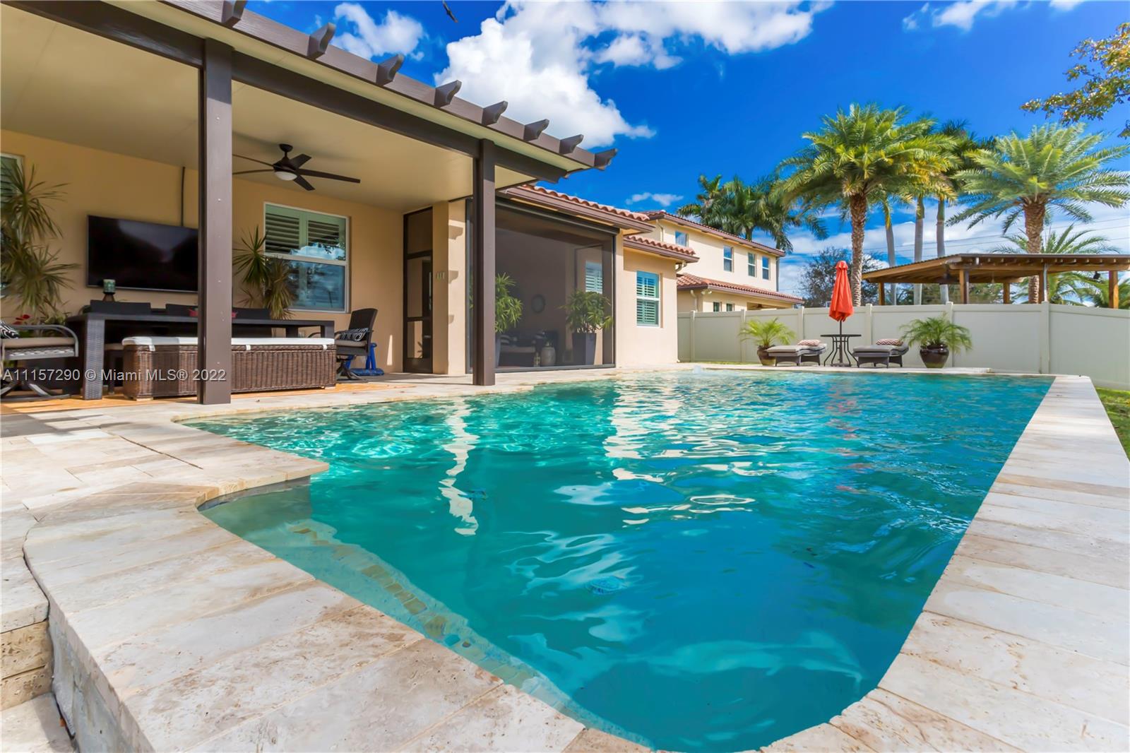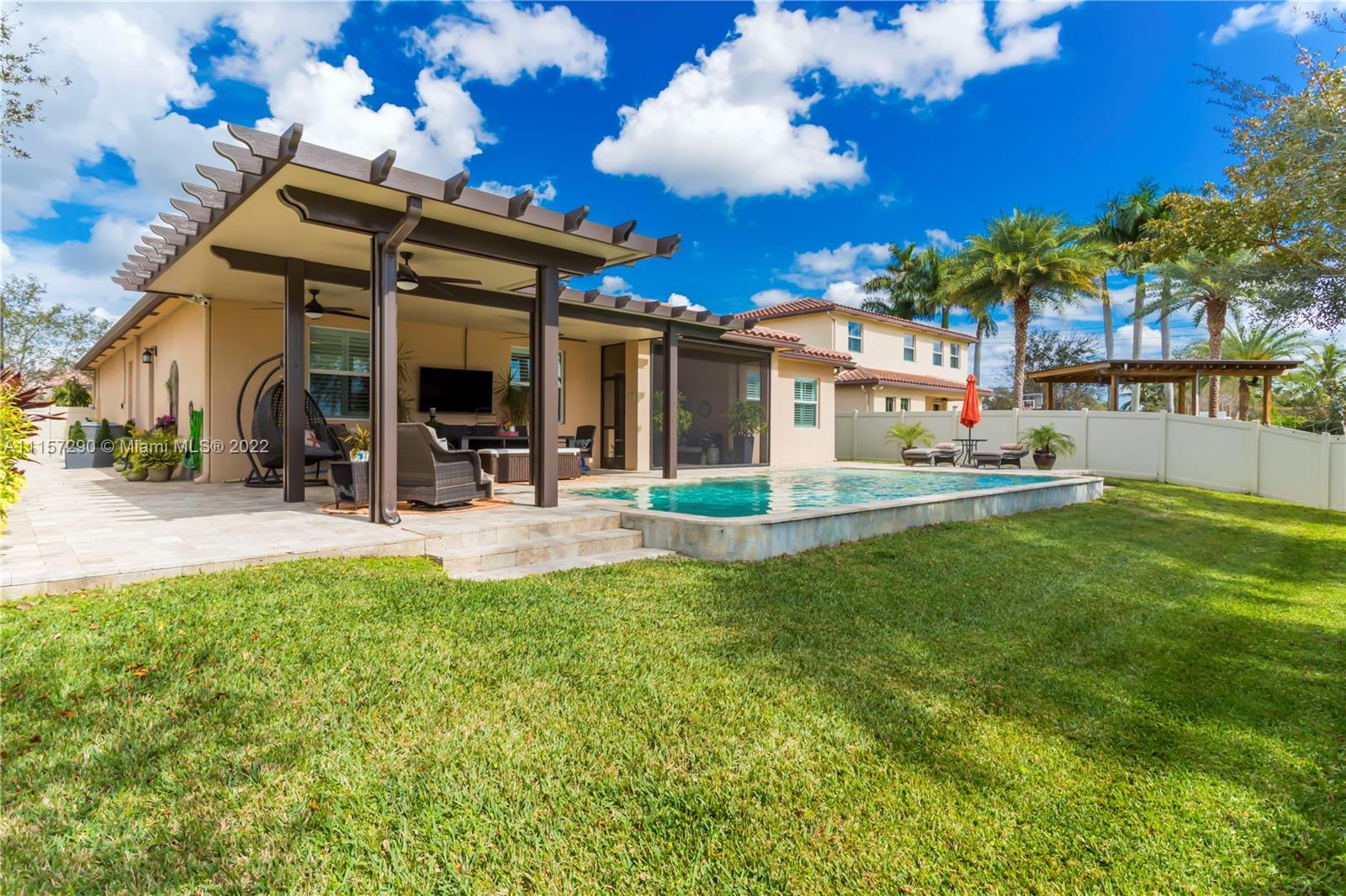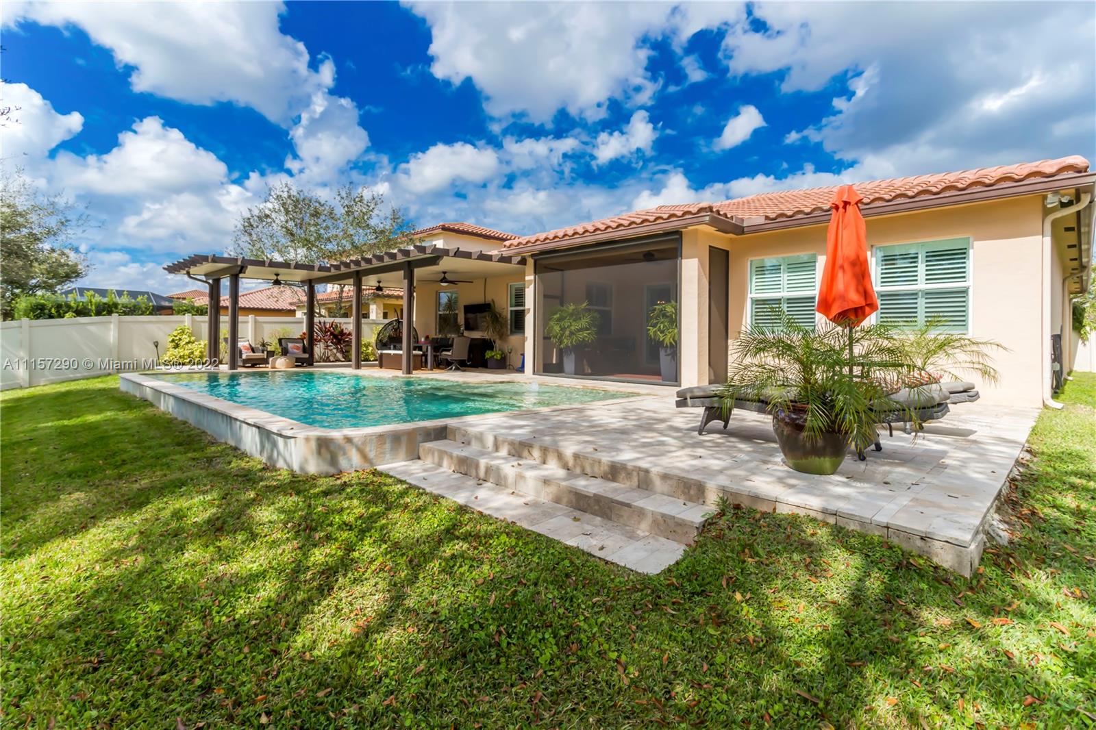 IMMACULATE & STUNNING 1 STORY POOL HOME! OPEN KITCHEN W ISLAND/COUNTER, STAINLESS STEEL APPLIANCES (BRAND NEW FRIDGE & MICROWAVE) COFFEE BAR/WINE BAR, GRANITE COUNTERS & WOOD CABINETS W/MOSAIC TILE BACKSPLASH. GORGEOUS TILE & WOOD FLOORING THROUGHOUT. SPLIT FLOOR PLAN W FABULOUS MASTER SUITE, TRAY CEILING, MASTER BATH W/ DOUBLE VANITIES, JACUZZI TUB, SEPARATE SHOWER. CUSTOM CABINETRY IN ALL CLOSETS, LAUNDRY ROOM & GARAGE. ELEGANT FIXTURES & ACCENTS, FRESHLY PAINTED, CROWN MOLDING, PLANTATION SHUTTERS; LAUNDRY ROOM W/SINK. COVERED PATIO W/ELECTRIC RETRACTABLE SCREEN! LOUNGE IN REFRESHING SALTWATER POOL OR RELAX UNDER NEW PERGOLA W/ CEILING FANS! COMPLETELY FENCED IN & IMPACT WINDOWS THROUGHOUT! ONLY 26 HOMES IN AMAZING DAVIE COMMUNITY LOCATED NEAR 595, 75, TURNPIKE & SAWGRASS EXPRESSWAYS!