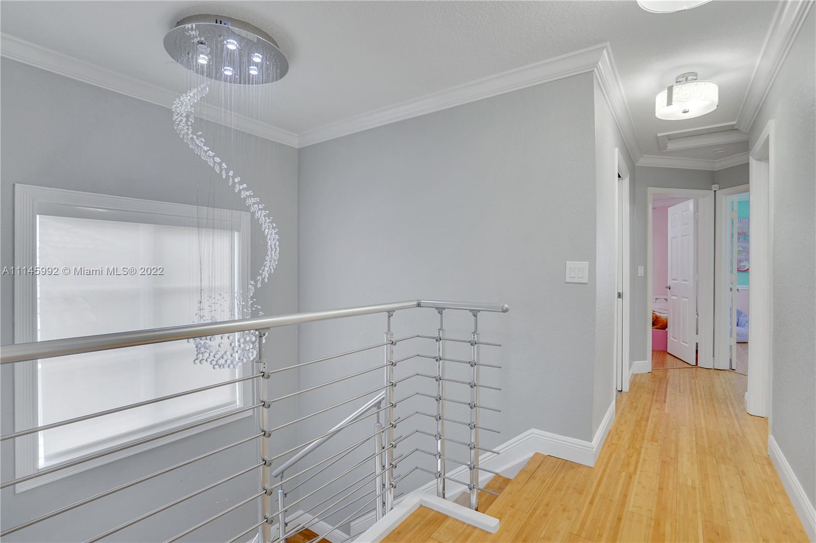 Stunning home located in Huntington. This amazing 4 bedrooms and 2.5 bath home has been tastefully renovated with beautiful bamboo flooring, a large gourmet kitchen with a sink island, built-in closets in every room, custom lighting fixtures with a large chandelier centering the custom stairs. Newer roof installed in 2018, impact windows throughout, and electric window shades.