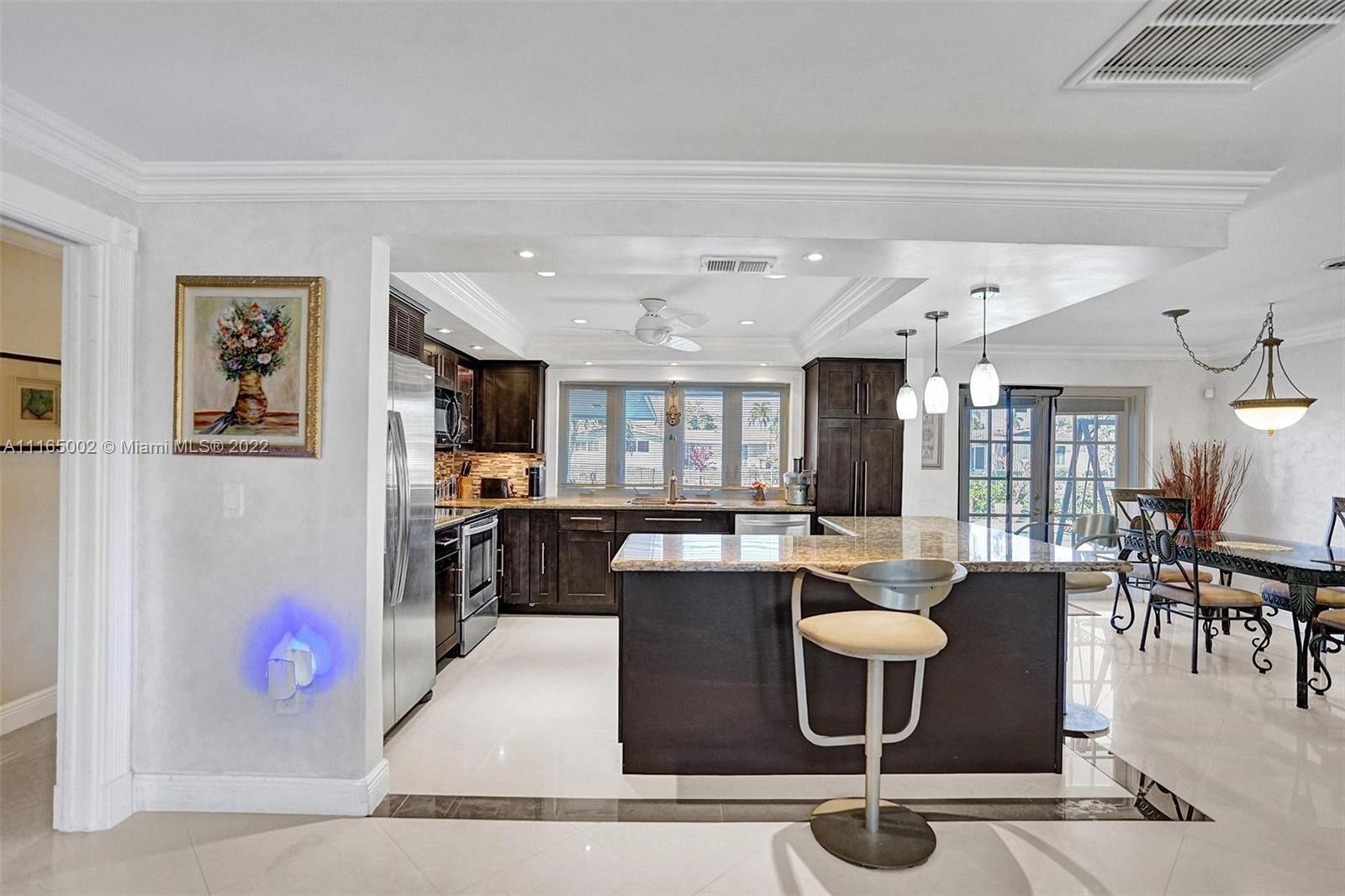 Spectacular and completely renovated 3 bed, 2 bath waterfront/OCEAN ACCESS pool home located in the desirable Coral Ridge Isles of East Fort Lauderdale! This home offers an open floor plan filled with natural light, a remodeled kitchen(stainless steel appliances/brown cabinets/granite counters, and an island). The backyard views are breath-taking with 75’ of frontage, wide canal, and dock. Other features include: mature landscaping, recess lighting, large circular driveway, and a travertine pool area. Great neighborhood with 9/10 Floranada public elementary and top rated Pine Crest in walking distance. Just imagine the boat rides or golf cart adventures!!