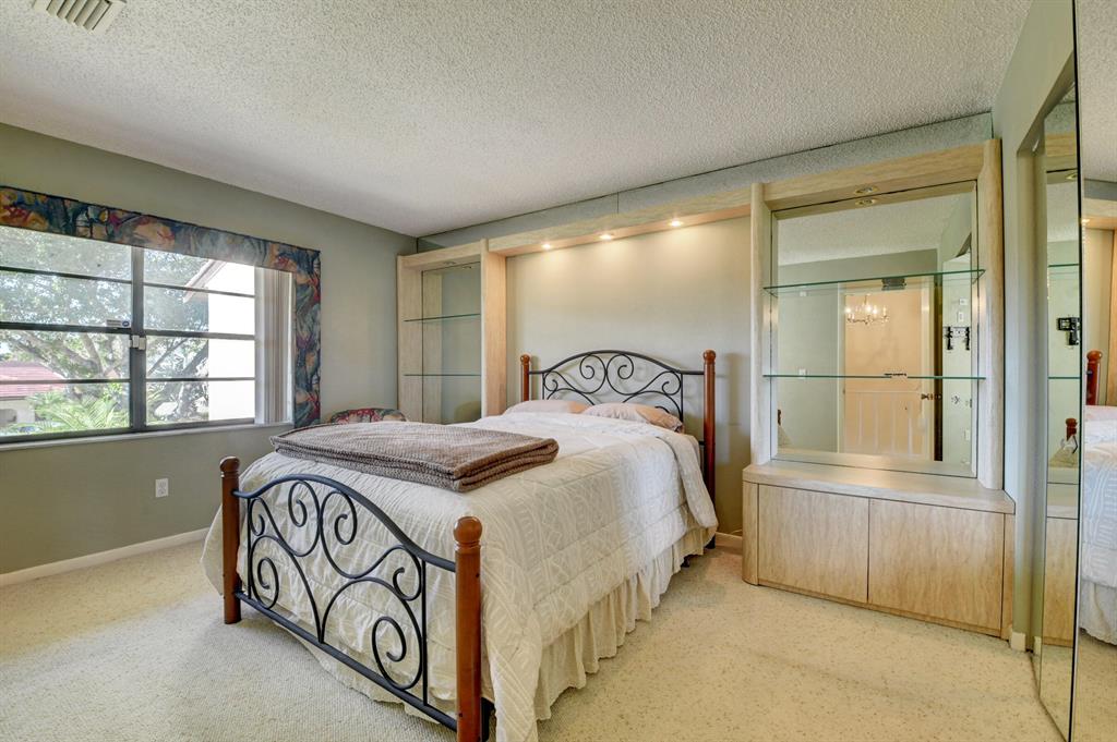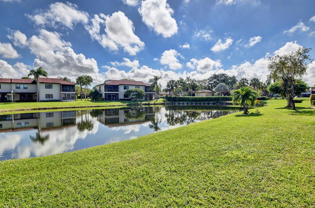 More for your money? This truly delightful 1,540 livable sq. ft. 2 BR/2.5/BA , 2 level TOWNHOUSE offers a gleaming EASTERN LAKE VIEW, Dining/living area sliding glass door leads out to your glass window ENCLOSED covered PATIO, Updated Granite Kitchen. S/S Appliances, Built in Wine Cooler, Washer & Dryer, White Cabinets, breakfast area, w/sliding glass door leads you out to your own private brick paver out door garden/atrium area, entry hallway to 1/2 bath/ powder room w/ separate spacious storage closet, Staircase to upstairs Master bedroom & 2nd bedroom features plenty of sunlight and CLOSET spaces, 55+ Community as per HOA, No Pets, Fairways of Boca Lago has 2 Community Pools, Lovely Golf/Tennis Community WITHOUT Mandatory Membership, but available, close to shopping, main highways