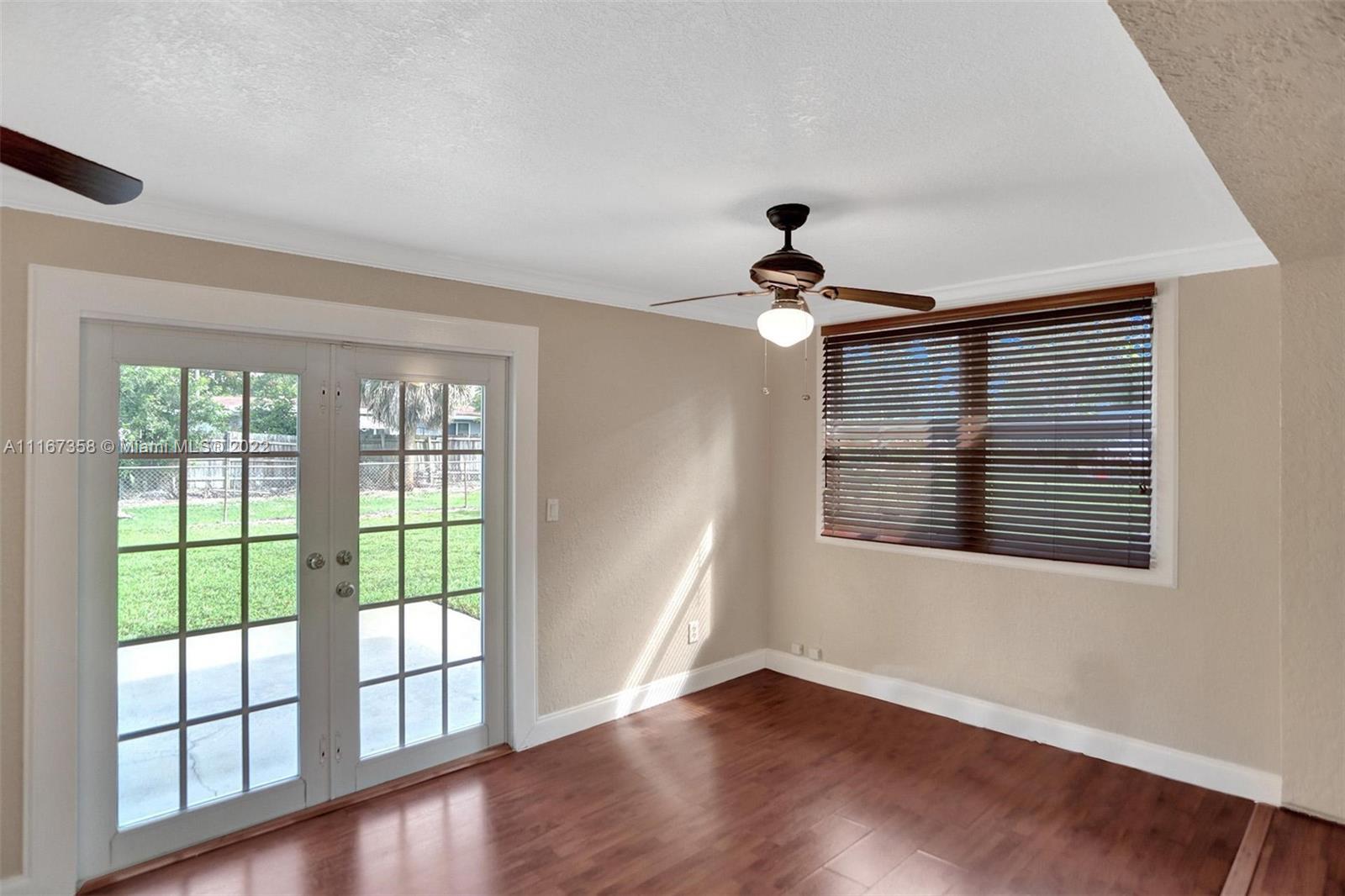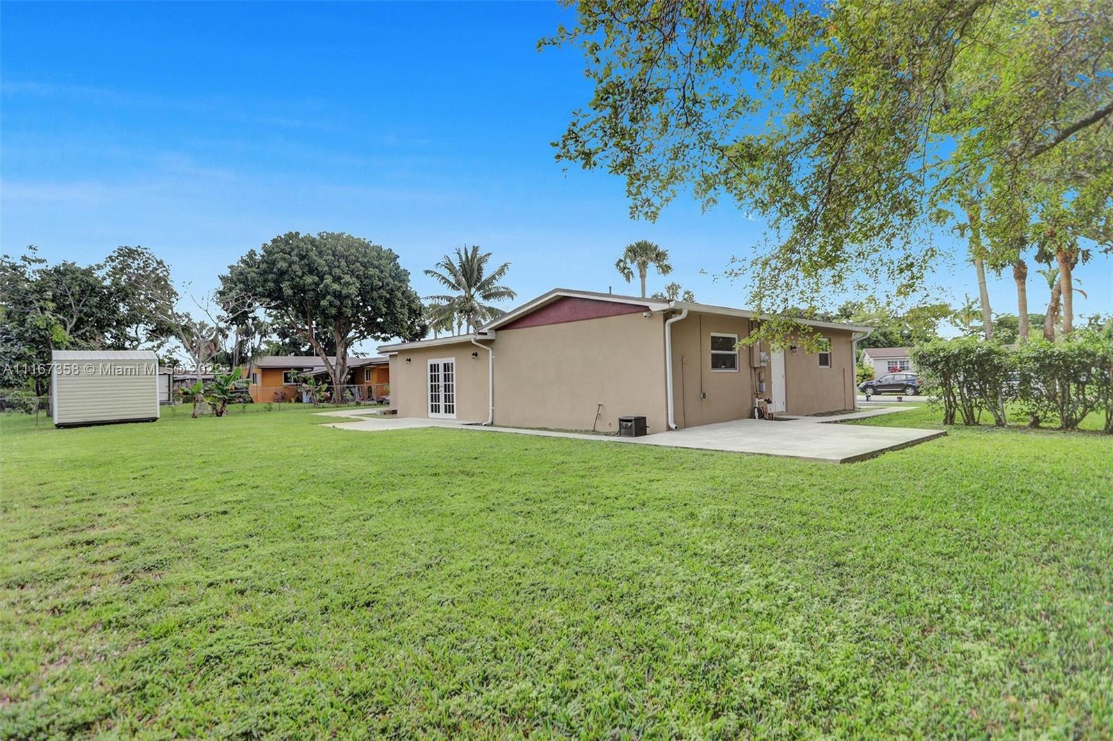 Amazing opportunity to own this beautiful 3 bedroom 2 bathroom home with a 2 car garage located in the heart of Plantation. This home is located on a corner lot, large backyard for entertaining. Tile flooring in the master bathroom and guest bathroom. Wood laminate flooring throughout the main living area, kitchen, master bedroom as well as in the 2nd and 3rd bedrooms. There are ceiling fans in the Living area, Dining area, and all bedrooms. The home is beautifully landscaped, outside shed for extra storage. All Hurricane impact windows, No HOA. Property is being sold AS IS. No Appraisal Contingencies. **RING CAMERA SYSTEM DOES NOT CONVEY*