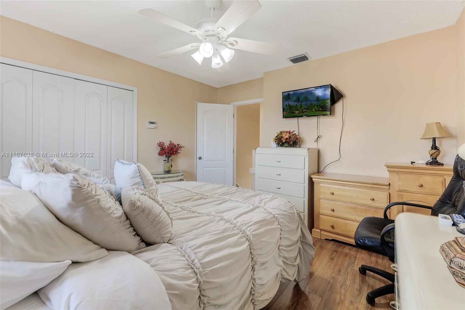 Beautiful 2 story townhouse condo next to Palmetto hospital & 826 in the heart of Hialeah. Nice open floor plan with tile floor on main floor, wood floors on stairs and both bedrooms upstairs. Impact windows downstairs, accordion shutters upstairs, washer & dryer and unit comes with 2 parking spaces.