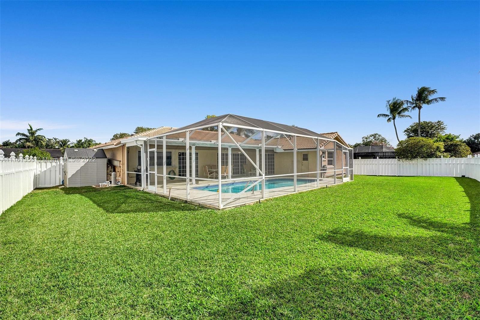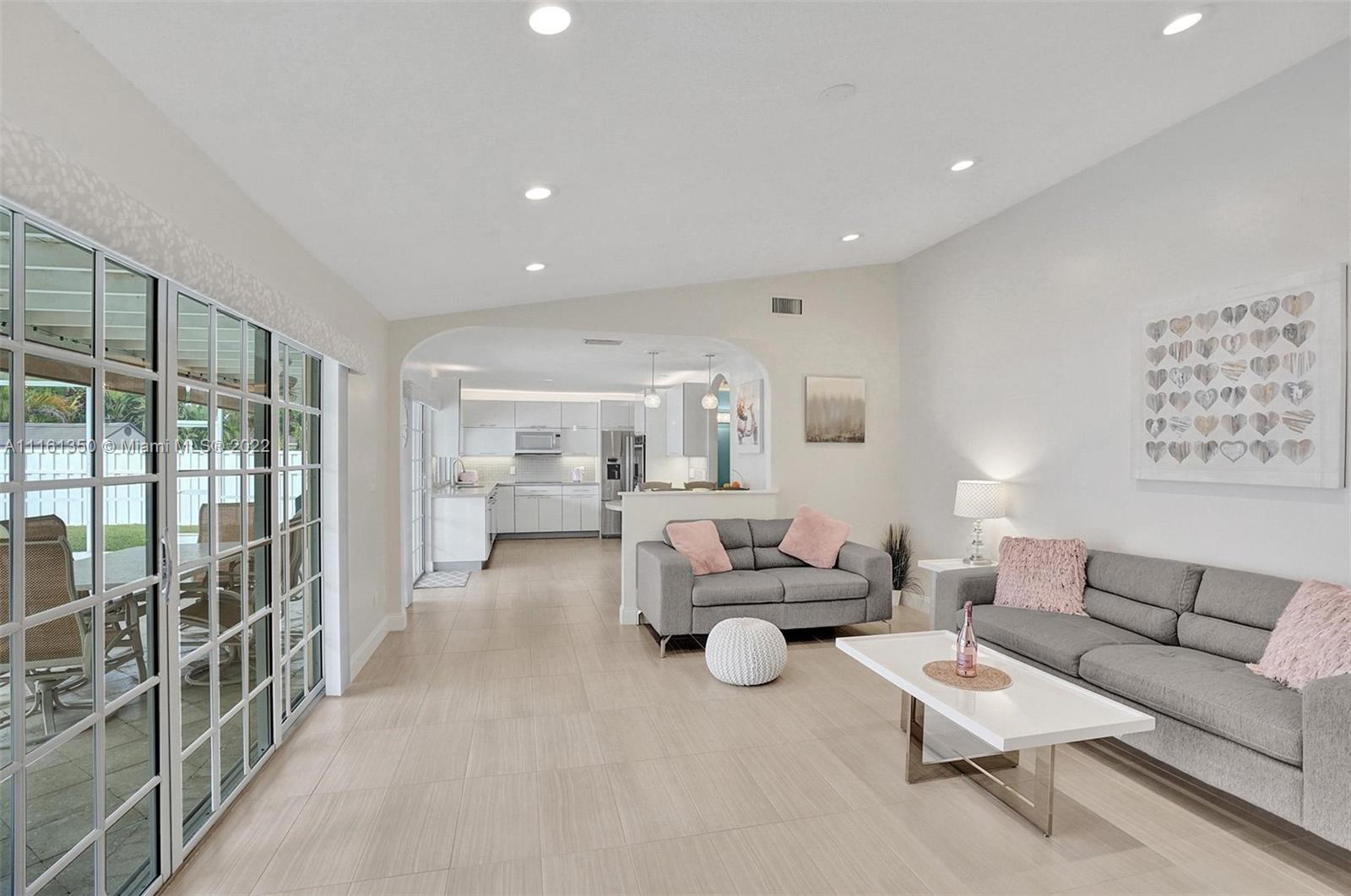 This home shows like a model! Immaculate 4-bedroom 2 bath, one story pool home in Coral Springs! The kitchen has been completely upgraded with custom built high gloss cabinetry, quartz countertops, stainless steel appliances, breakfast bar, touchless faucet and LED lighting above and below the cabinets. The spacious living room offers gorgeous views of the covered patio and pool! New porcelain tile throughout the main living areas of the home. Both bathrooms have been completely upgraded. Large master suite with views of the pool. The backyard is fully fenced-in, with a huge grassy yard, large screen enclosure, travertine patio, oversized pool that was recently resurfaced with a new diamond brite and new decorative tile. This home is protected by security cameras.