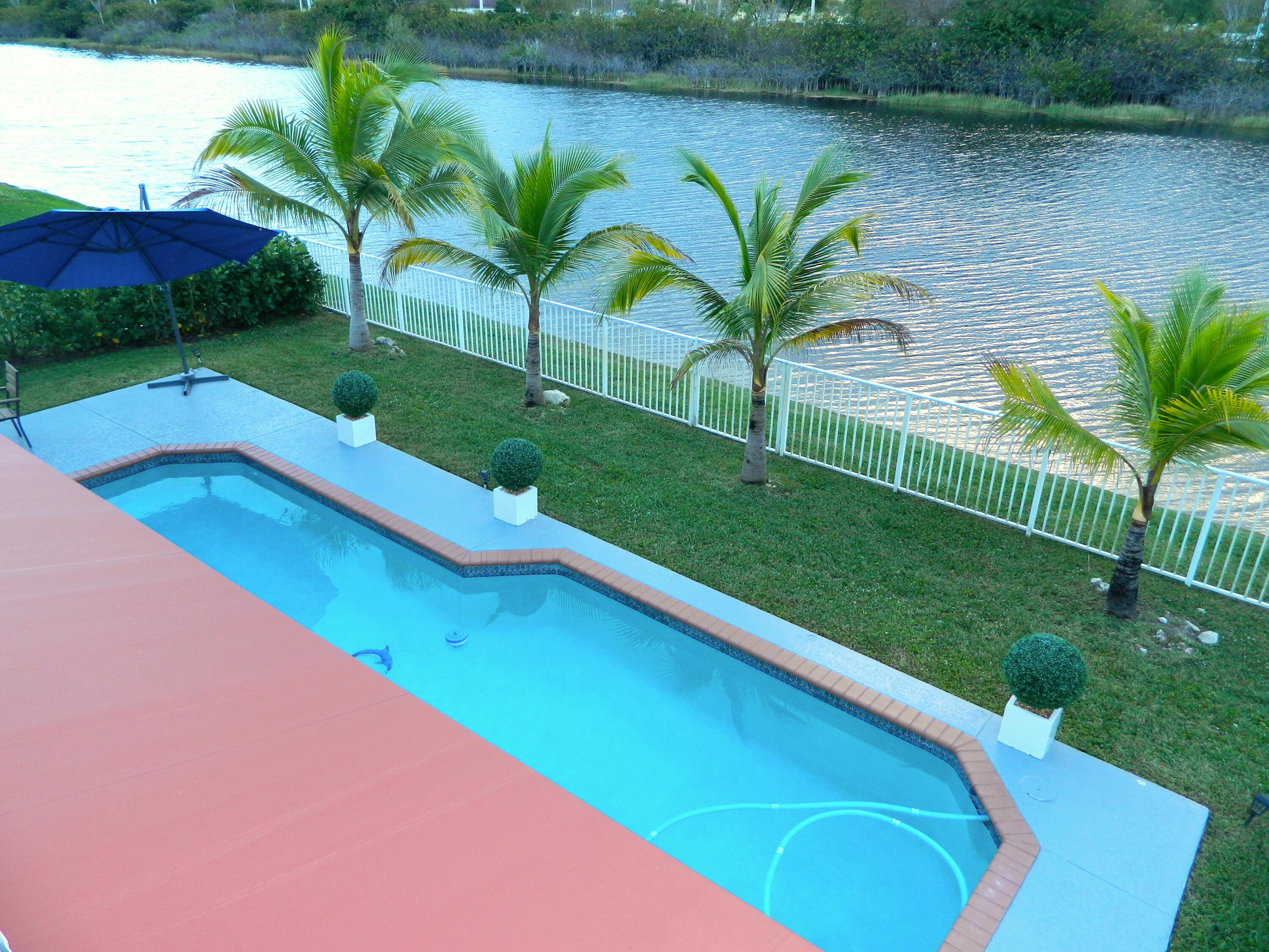 Large and spacious 4 bedroom pool home offers a new roof, fresh interior and exterior paint, oversized kitchen with a new range, micro hood and dishwasher. granite kitchen countertops. Kitchen has brand new appliances. Living room has upgraded modern Wood panels that replaced original shelving. Master bathroom has new modern shower glass door. upgraded shelving space in Master bedroom closets. New roof. . New AC. Back patio has new large awning Supported by Roman pillars. Outdoor pool has new kitchen and refrigerator. New washing machine and dryer. The home also includes a large master with a balcony and very large master bathroom, spacious rooms. large fenced yard with a water view, and good size patio. Gated community includes a pool, and is located in a central and desirable location.