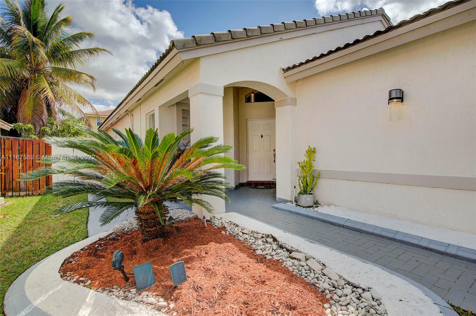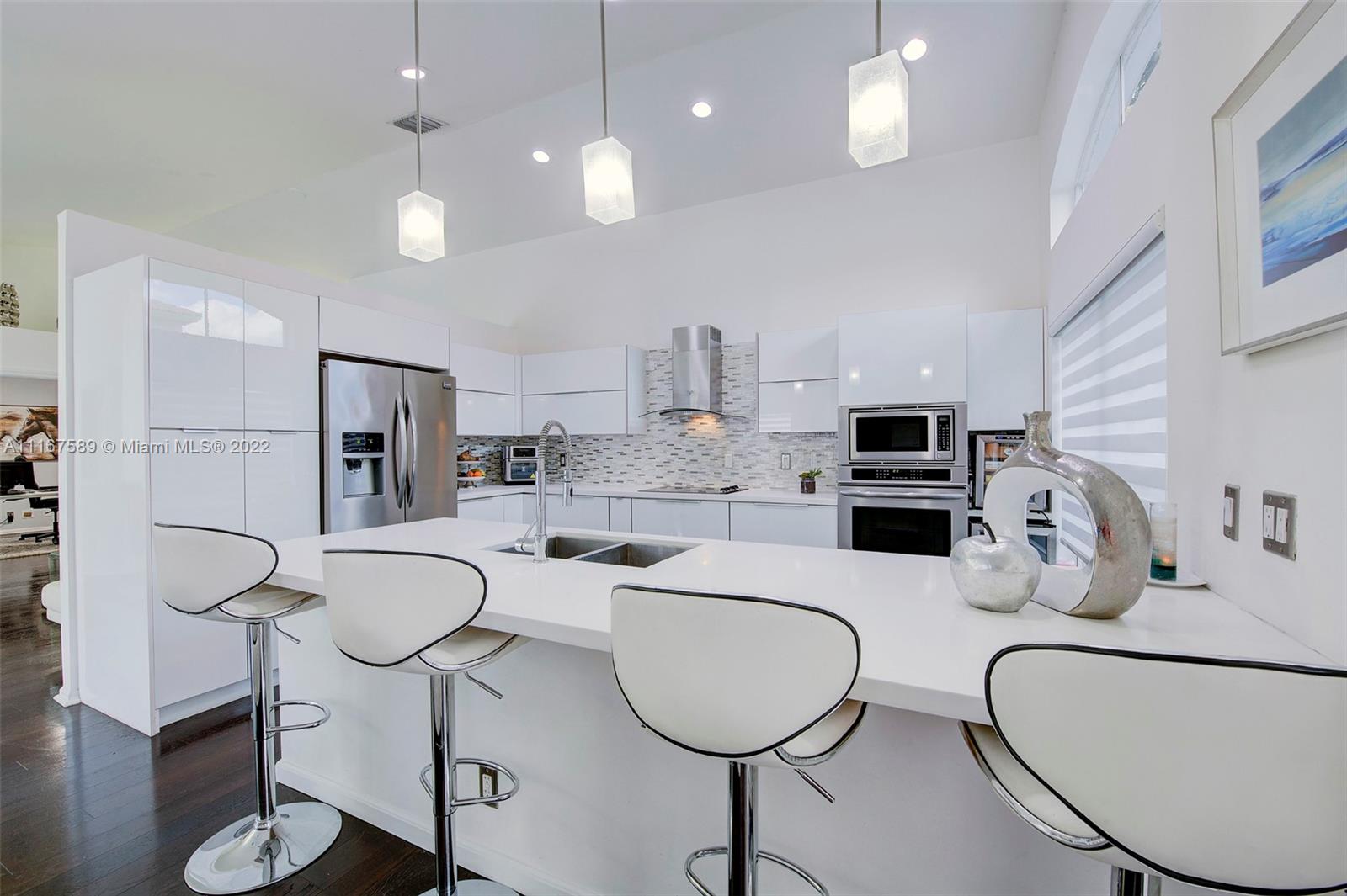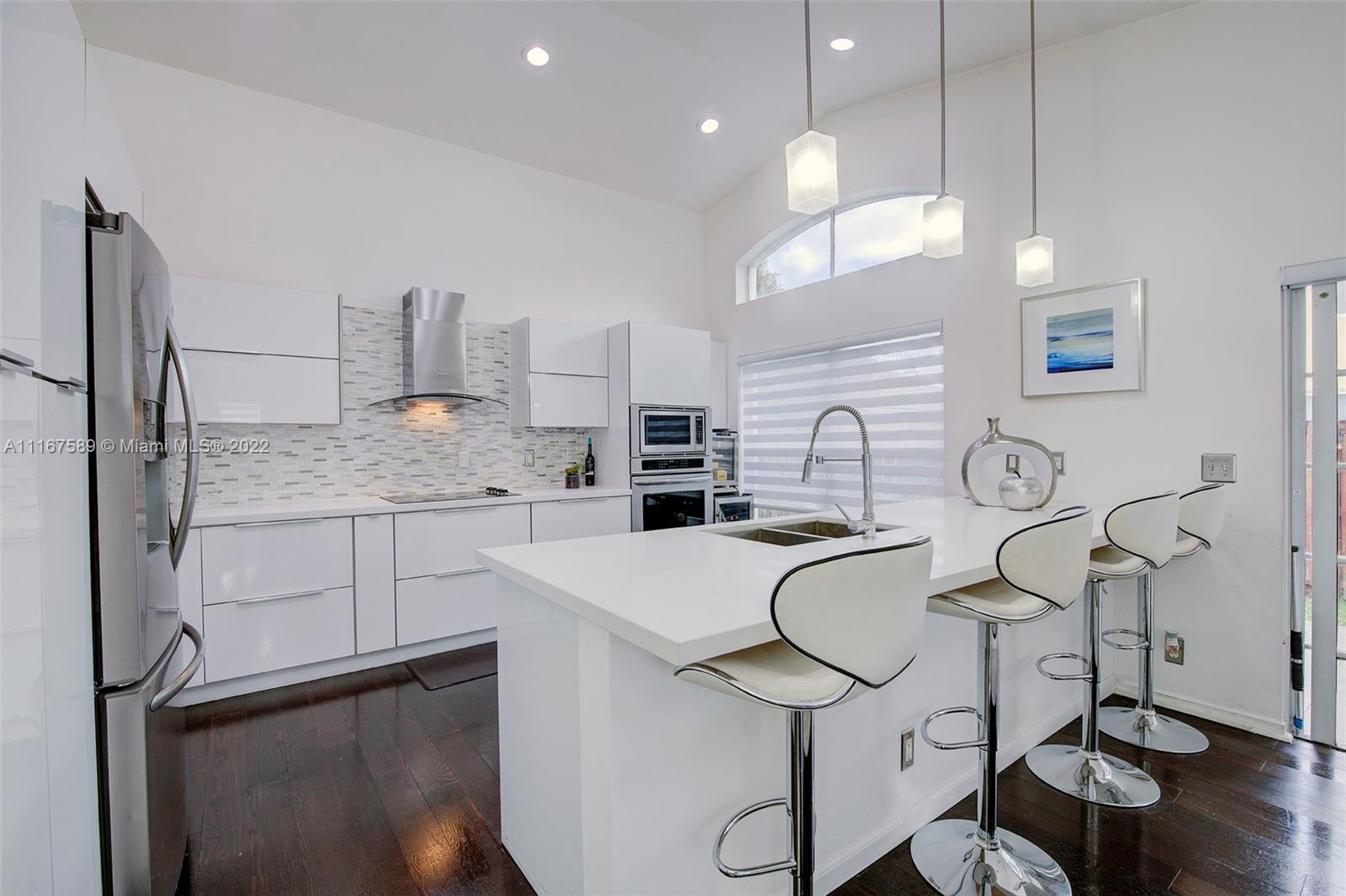 BEAUTIFUL 4 bedroom 2 bathroom home located in the highly sought after Encantada Gated Community! Open floor plan with natural lighting and meticulously maintained. Tastefully updated and renovated white kitchen with beautiful center island, stainless steel appliances and ample storage space. Updated flooring throughout! NEW 2020 AC! Updated window treatment. Surround sound system located in the family area and backyard.Private and fully fenced backyard that makes a great space for entertaining and enjoying Florida days! Automated Misting Mosquito control system 360 all around the house. Hurricane shutters. MUST SEE!!!!