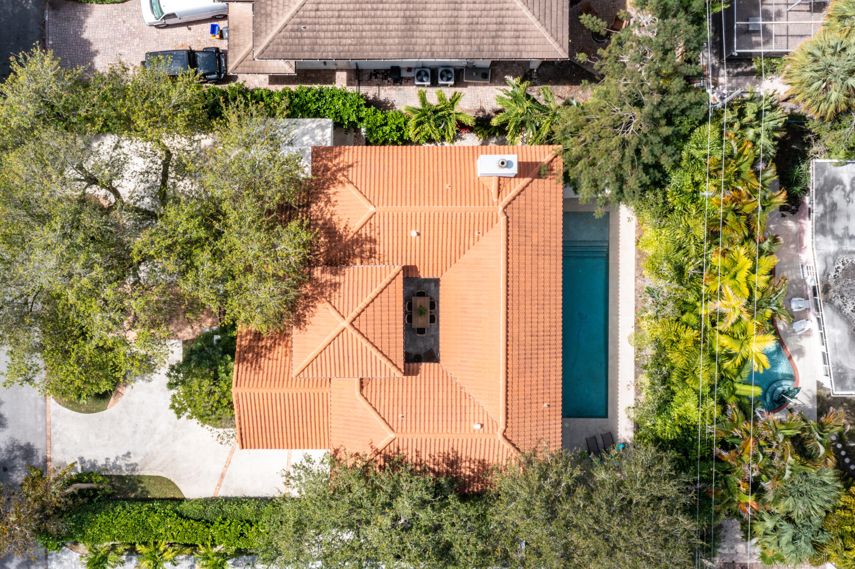 Nestled among beautiful Banyan & Oaks trees comes this exceptional Mizner-Style Estate in the Old Floresta/Tunison Palm neighborhood in Boca Raton. Featuring 4,495 total square feet this home offers an easy floor plan surrounding the two-story open central interior atrium, a very special & unique feature! This estate boasts 5 bedrooms, a den/office, 3.5 baths, & a 2nd floor yoga/reading area. The chef's kitchen with gorgeous quartzite countertops & custom butcher block on a quartzite island with built-in microwave & seating area is the perfect spot for family get togethers. Viking Gas range/ovens, Sub Zero appliances, & a desk area complete the kitchen. This open concept kitchen flows easily into the dining area & the family room with fireplace. French doors open to the pool area &