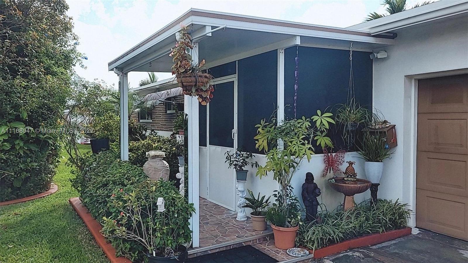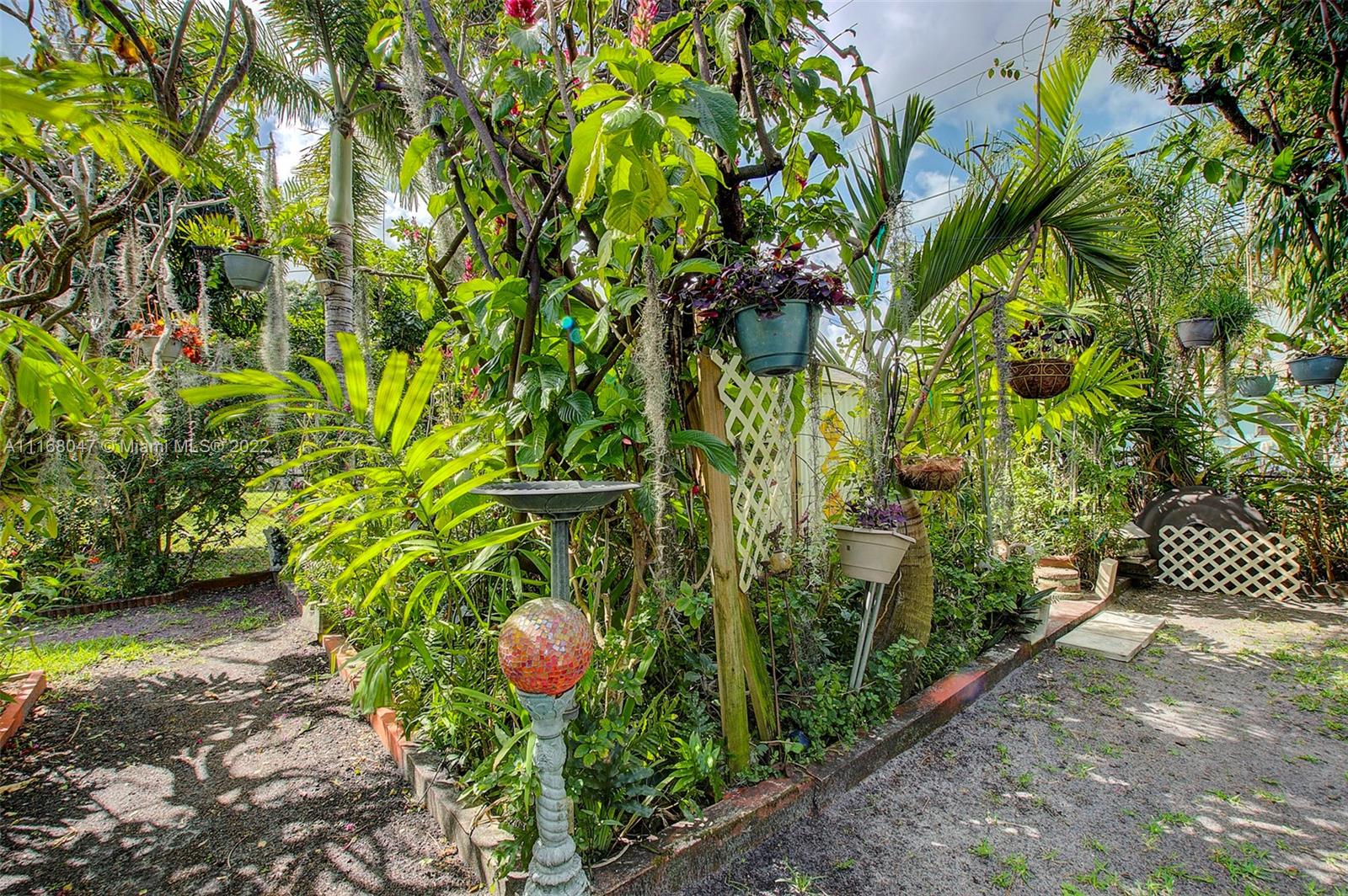 Make this GARDEN OASIS Home! This 2/2, 1 car garage home w/ SUPER LOW TAXES has a backyard w/ a “Wild Life Certified Garden for Birds & Butterflies”. Stainless-steel kitchen appliances. Updated bathrooms; first bathroom whirlpool tub, second bathroom walk-in shower. Tiled throughout, except bedrooms. 6year-old shingled roof. The 3 stereo systems throughout the house & yard, multiple TVs, & camera system will convey. Natural gas water heater. New washer. Water Filtration System. Impact Windows & Doors. House has central A/C but also has generator enabled wall A/C in master bedroom. Great for hurricanes. Wired w/ alarm system & motion detectors w/ video monitoring. Privately fenced yard w/ working Jacuzzi! The 10x12 shed, 10x16 Greenhouse & 4x18 shade house also convey. A MUST SEE!!