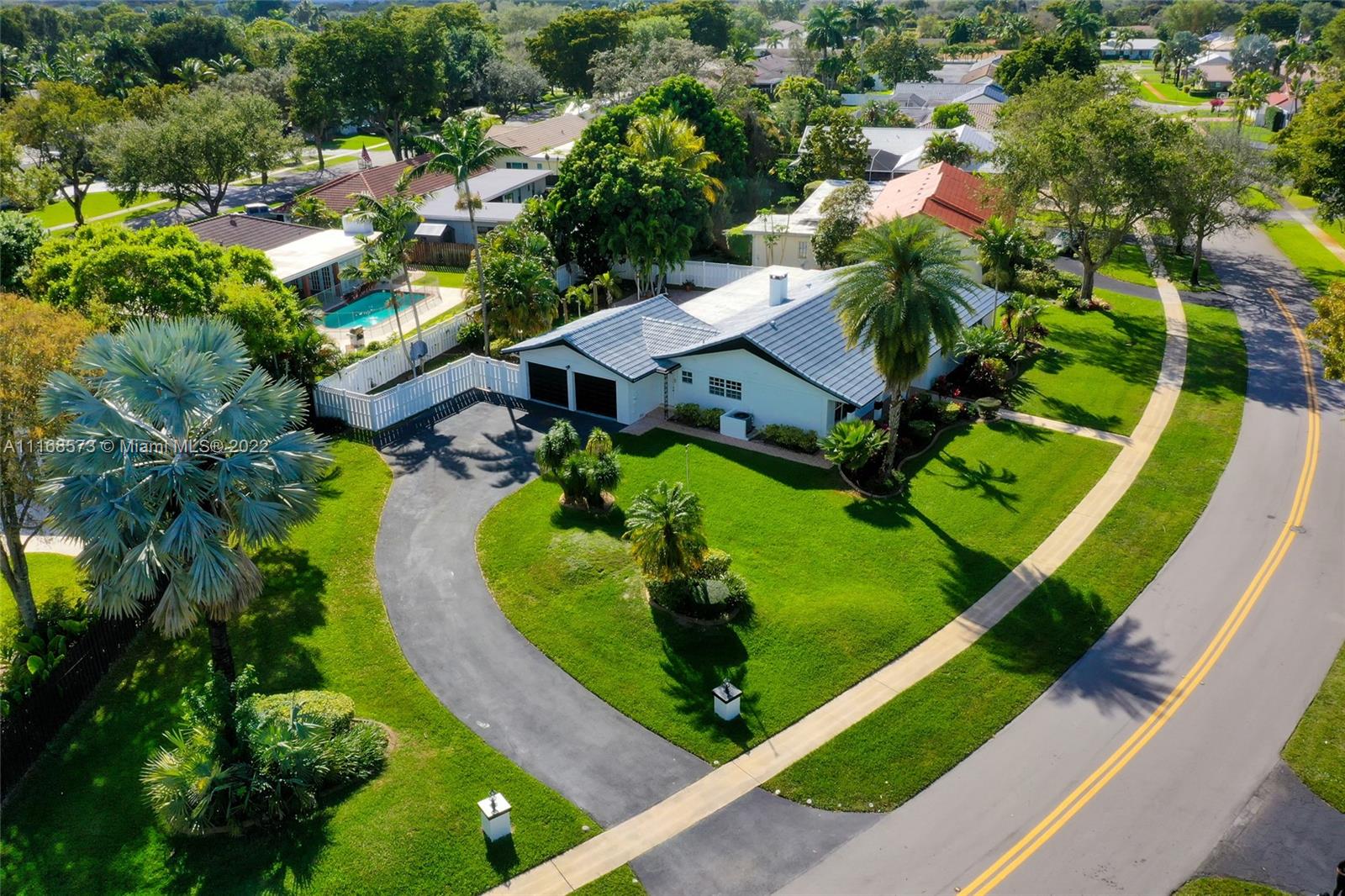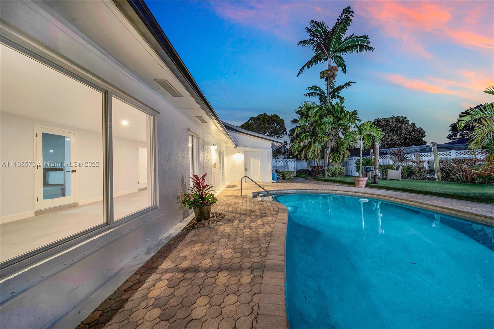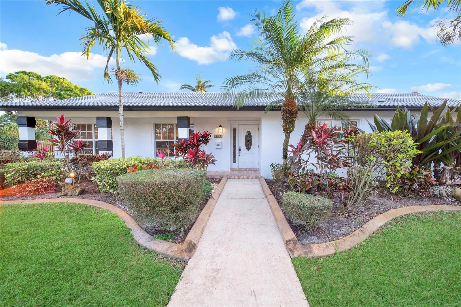 Welcome to Villa Palms! This beautifully-updated custom designer home blends delightful original charm with modern updates: grand open living space, double-sided fireplace, flex dining, breakfast area, and gourmet kitchen with a huge 4’ x 8’ island—perfect for entertaining! Unwind in the expansive Florida room overlooking the beautiful rear gardens and sparkling pool. The fourth bedroom can flex as a home-office, media room or as a guest-bonus room. Nicely updated with impact windows and doors, new designer kitchen, modern bathrooms, new flooring, stainless steel appliances, new AC, water heater, washer-dryer, custom built-in closets and two impact garage doors. Your personal oasis awaits you on a large corner lot in exclusive El Dorado Estates in Plantation, with surprisingly low HOA fee!