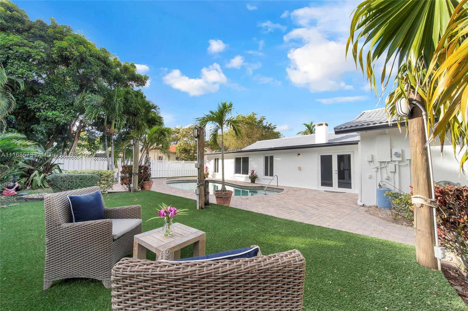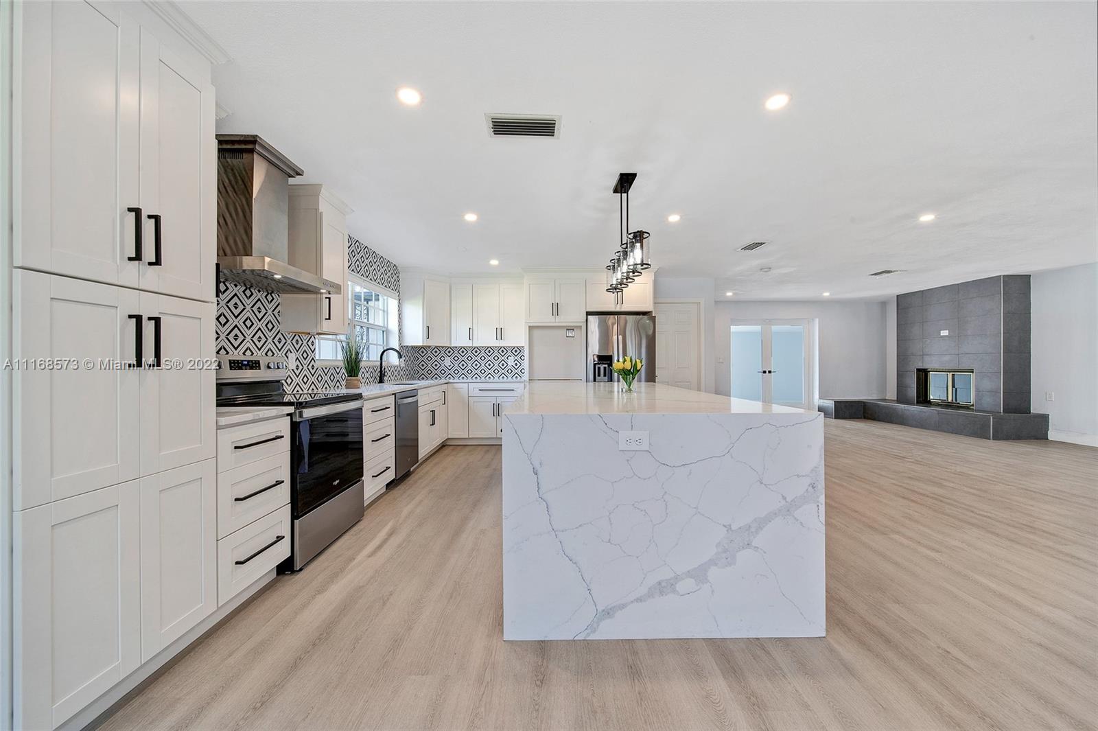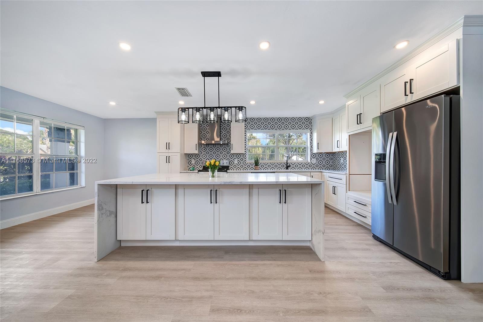 Welcome to Villa Palms! This beautifully-updated custom designer home blends delightful original charm with modern updates: grand open living space, double-sided fireplace, flex dining, breakfast area, and gourmet kitchen with a huge 4’ x 8’ island—perfect for entertaining! Unwind in the expansive Florida room overlooking the beautiful rear gardens and sparkling pool. The fourth bedroom can flex as a home-office, media room or as a guest-bonus room. Nicely updated with impact windows and doors, new designer kitchen, modern bathrooms, new flooring, stainless steel appliances, new AC, water heater, washer-dryer, custom built-in closets and two impact garage doors. Your personal oasis awaits you on a large corner lot in exclusive El Dorado Estates in Plantation, with surprisingly low HOA fee!