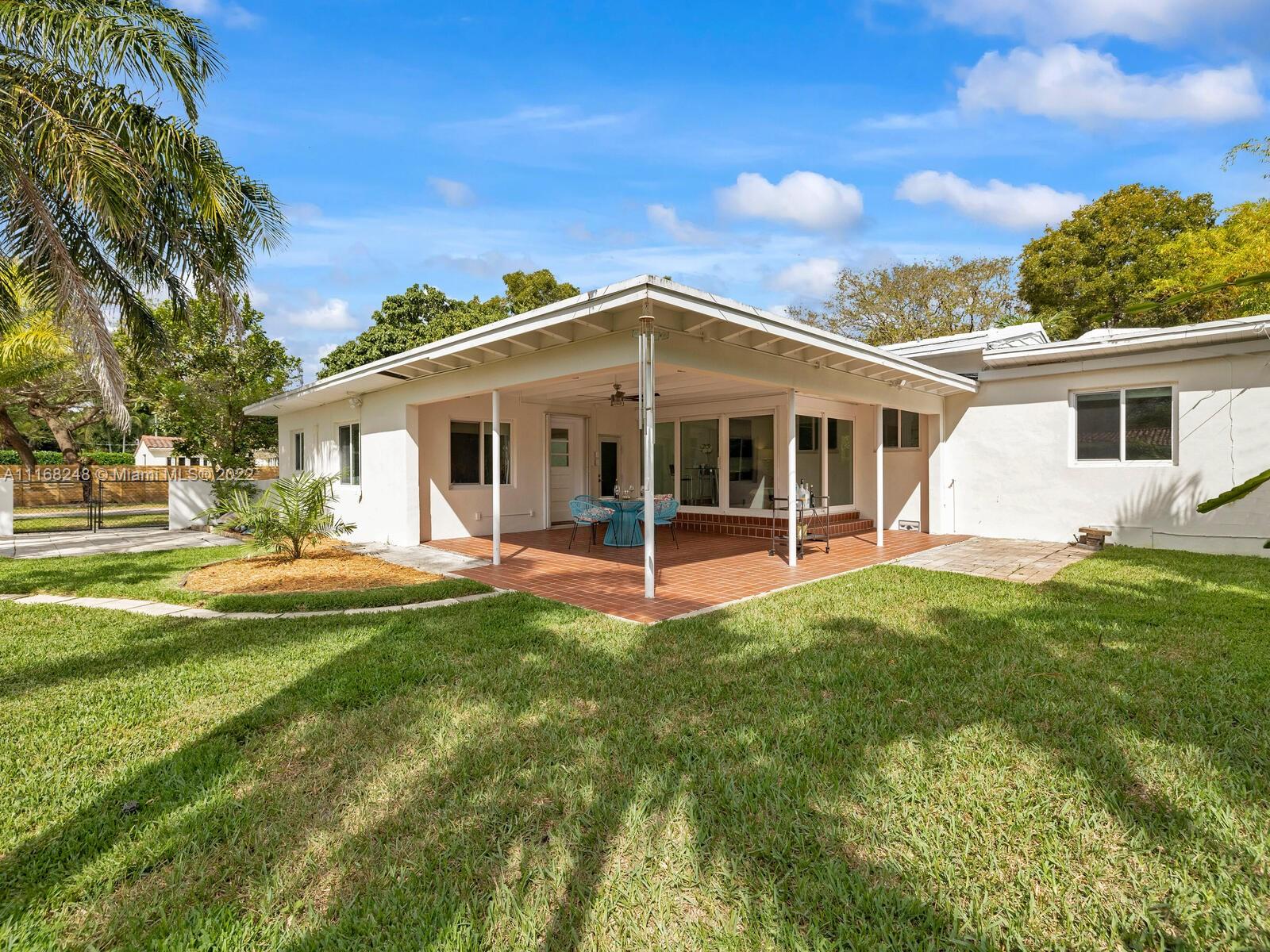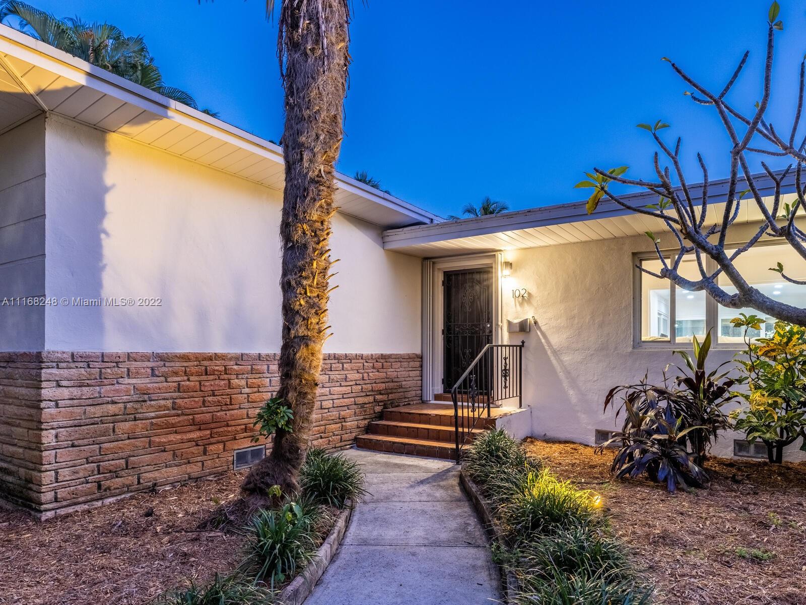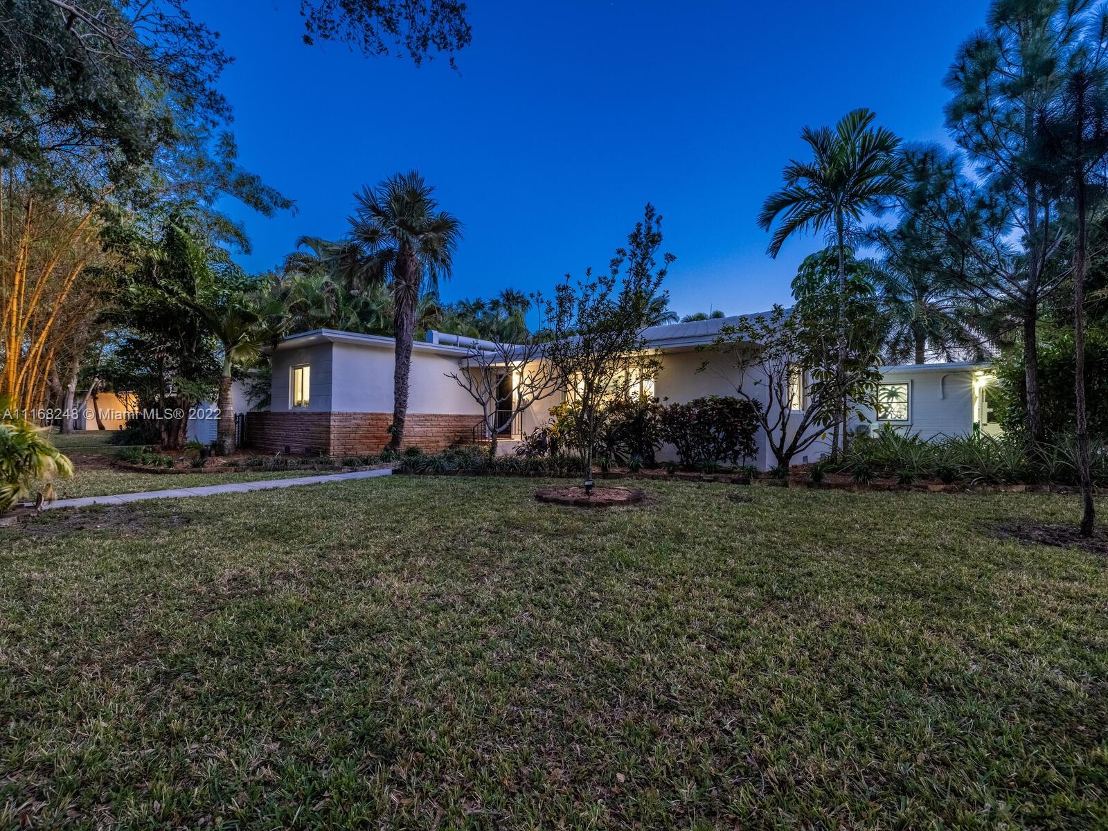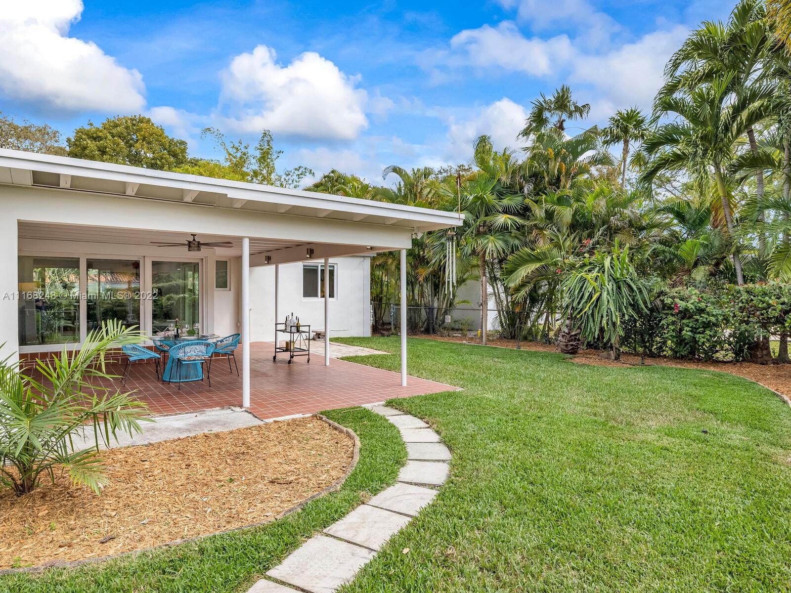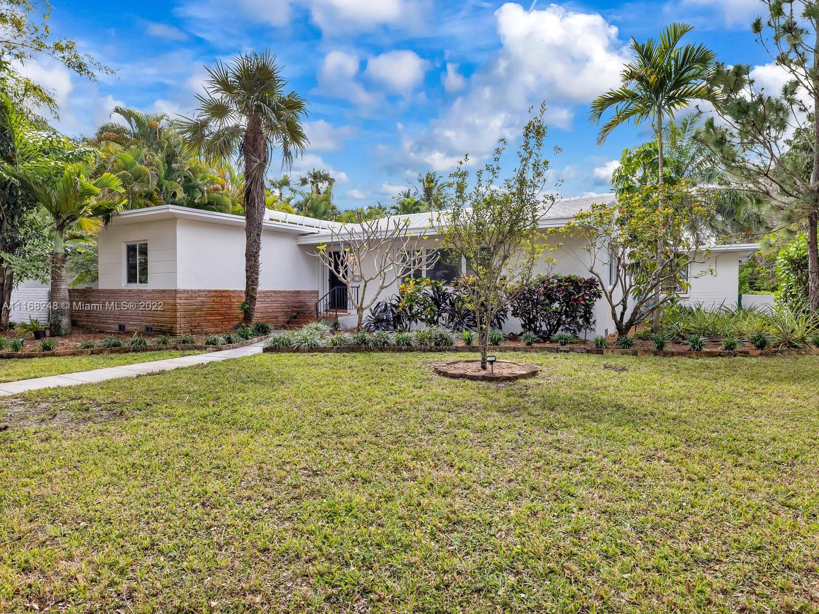 Welcome to Pineapple Point! Opportunity knocks in this classic Mid-Century Modern home on a lush, tree-filled signature corner lot with bespoke petite pineapple grove and separate guest suite. Enjoy as is, or renovate to your heart’s delight in the wide, spacious main house with open living and dining that flows to expansive glass window-walled media room overlooking the large, covered veranda and rear tropical gardens with room for a pool and so much space to entertain, relax and play! Bonus private entrance studio suite great as office, zen den or guest nest. Perks—impact windows, wood floors, newer roof and enclosed garage. All in a non-flood zone just blocks to downtown Miami Shores shops and restaurants. With your personal touches, you’ll agree— Pineapple Point won’t disappoint!
