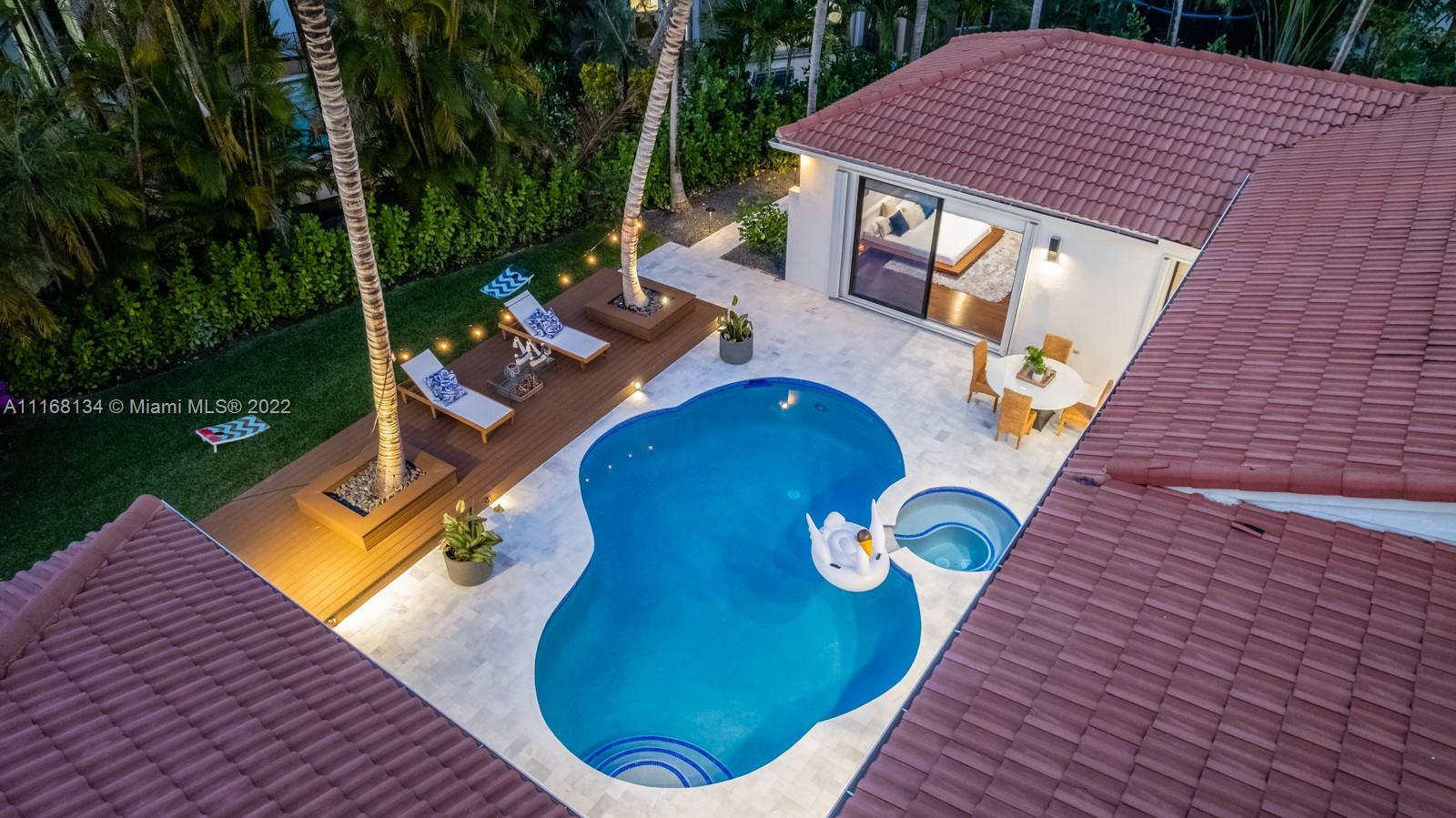 This gorgeous & spacious 6 bedrooms, 6 Bathrooms courtyard home located at the prestigious gated golf community of Weston Hills Country Club has it all: The most desirable floor plan with a separate 1BR/1BA guest house, an oversized lot with spectacular, just remodeled patio with modern travertine pavers floors, free-form pool, wood deck, and a separate backyard. Open and spacious split floor plan featuring marble & wood floors, vaulted ceilings, floor-to-ceiling windows, frameless glass railing stairs, a formal living and dining room, and a huge family room that interacts with the new gourmet kitchen with stainless steel appliances, and quartz countertops. All windows have accordian shutters. Ideal for those families who love to entertain with family and friends. 3 car garage. A+ Schools.