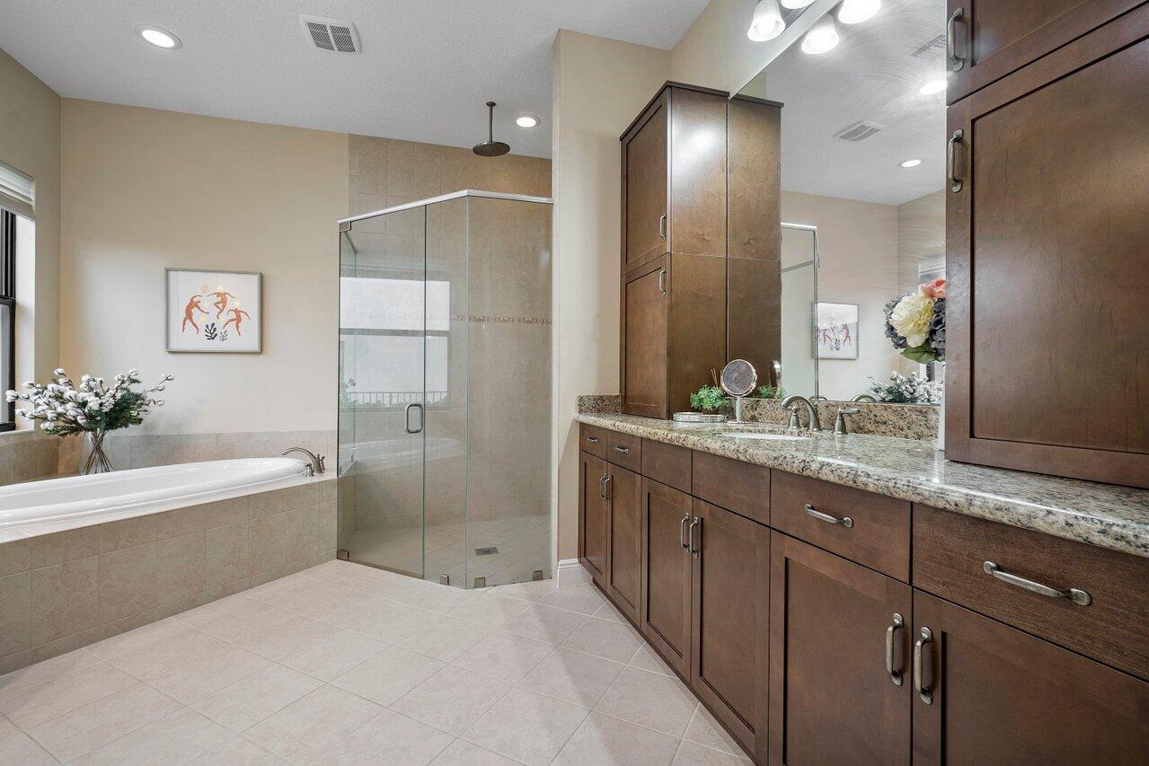 RARE waterfront stunner in Boca Reserve! No expense was spared upgrading this 2014 built estate home with premium fixtures, a chef's kitchen, wrought iron staircase, outdoor kitchen, large fenced in yard, totaling over $200k in builder's upgrades alone! This one of a kind home with 4 bedrooms plus bonus a room and/or 5th bedroom, 3.2 bathrooms, 3 car garage (two deep), lake view and pool + spa is located in West Boca's premier gated community! The downstairs features the oversized master bedroom, ensuite guest bedroom, and bonus room/office. The upstairs features two guest bedrooms with a large balcony overlooking the lake.