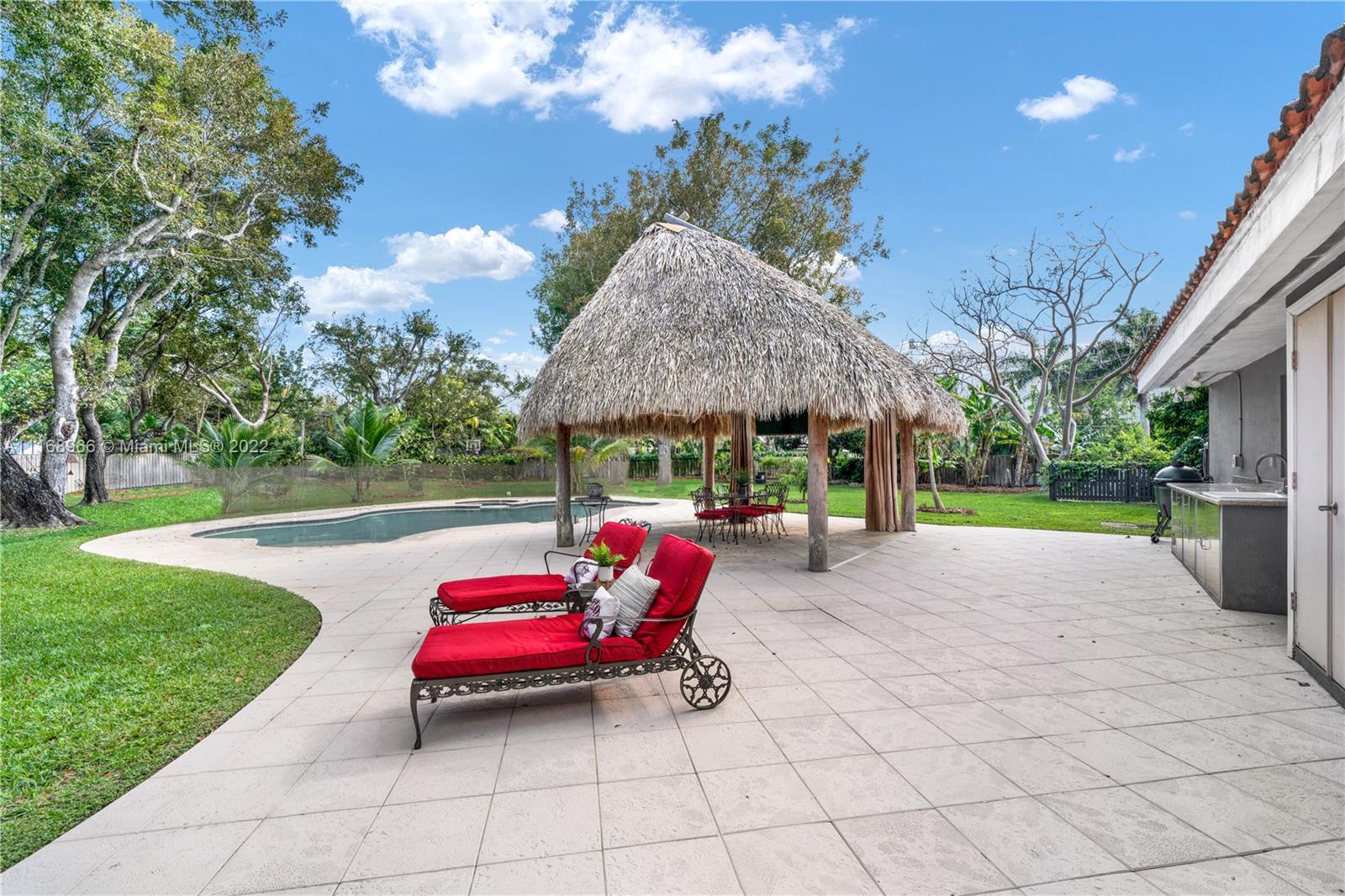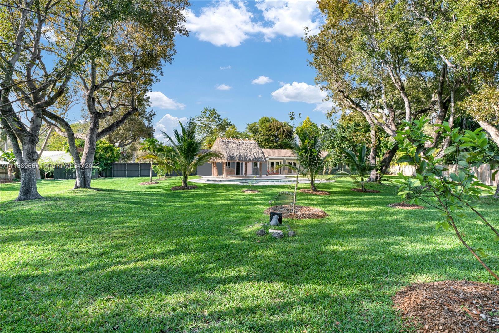Pinecrest Garden Lovers Delight! Tucked away on a side street, just off of Old Cutler sits this gated, acre estate under a canopy of lush landscaping and dozens of exotic, mature fruit trees on perfectly manicured grounds. Move right into this 3 bed/3 bath home with 2,800 SF of living area plus bonus office & spacious second family room. Plentiful impact windows/ french doors allow in natural light & open to a free form pool, patio with chickee hut, & expansive backyard w/ private vegetable garden to elevate your outdoor South Florida living experience. New plumbing pipes, vaulted ceilings, split bedroom for teenager/live-in/caregiver. Hop on bordering paths close to Pinecrest Gardens & top-rated private/public schools. Who is ready to call this fantastic house and neighborhood, home?