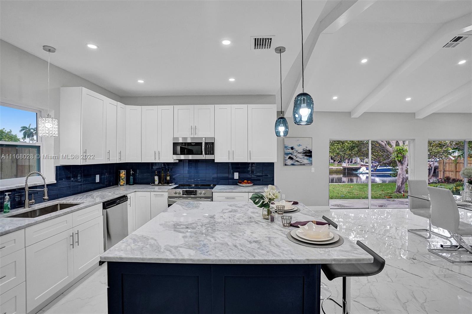 Perfection In Paradise! Another Completely Renovated Residence By The Mill's Design Group, This waterfront 3 bedroom 2 bath, office/den option & garage has all of the upgrades & space that you have been searching for. Soaring High Volume Cathedral Ceilings greet you as you enter the fireplace living room & dining room, Your Open Concept Kitchen has a sea of light blues, gray & white quartz countertops. White shaker cabinetry & top of the line stainless steel appliances, The primary bedroom suite includes a secluded courtyard perfect for morning coffee.& a spa designed bathroom with a soaking tub, shower, double vanity. Walk to Trader Joe's, Whole Foods, Bike to the beach, East Of US1, 1 Fixed Bridge To The Ocean. Incomparable Property. Staged By "Florida Stage Hands & Design's"