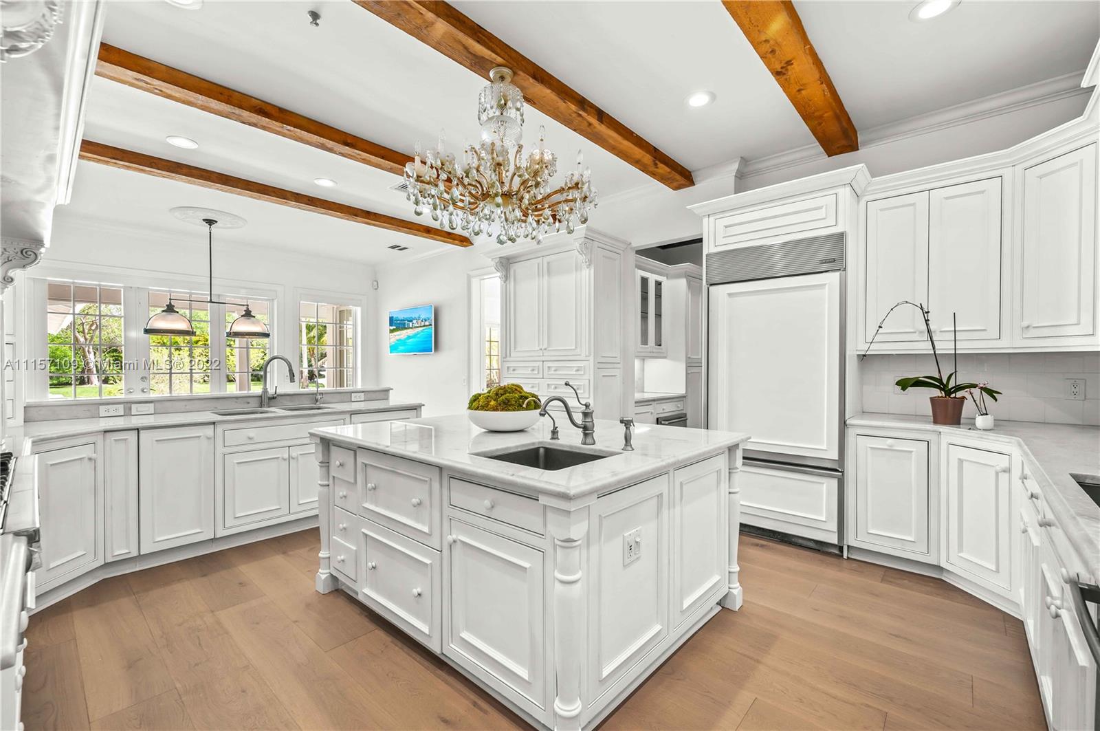 Beautiful 6 bedroom/6 bathroom 7,000 sqft Hamptons style home located on 1.5 acres in prime location Pinecrest. The property boasts enormous front and backyards with 29 mature oak trees, fruit trees, and a world of privacy. Fully remodeled, rich in precious details like the breathtaking fountain atrium when you first enter the house, brand new European hardwood oak floors, restoration hardware bathroom, and window fixtures, a stunning Tuscan style kitchen with top of the line appliances, and a butlers pantry area. Each bedroom has its own bathroom and a spacious walk-in closet. The great room and MB are bright and tall with double-height ceilings and open views of the outdoors. Impact windows, security camera system, 2 car garage, own well, and a water softener system.