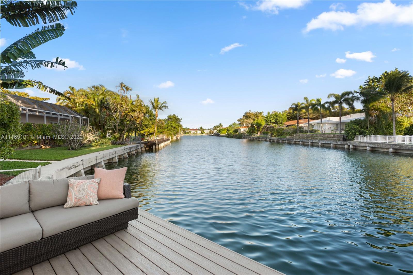 Spectacular 5-bed, 4-bath waterfront home in Gables By the Sea. This is an oasis of comfort with amazing pool, patio & summer kitchen. While there is no access to the bay, the serenity & beauty of the waterway are amazing especially while engorging the evening on the dock. This home is full of surprises, elevated to over 12-ft, it has a finished basement w/ a large traditional Spanish bar & dining room, that are perfect to catch a game or simply gather w/ friends while enjoying a glass from its temperature and humidity controlled 600-bottle wine cellar. 17k + sq ft lot, circular driveway, 2 car garage & Gym. This is a fabulous place to work at home or to come home to, after work. Priced to sell, the current owners enjoyed this home for 32 years and are ready to pass it on to a new family.